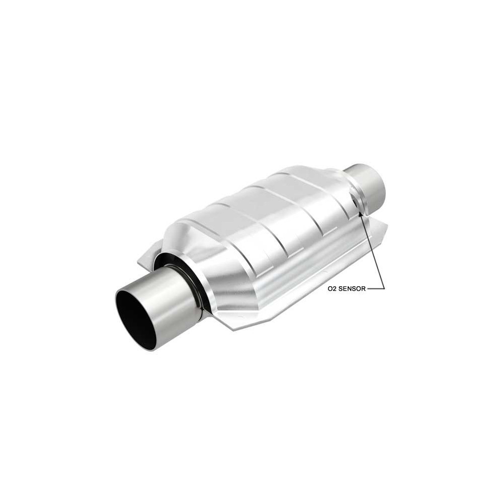 Convertitore catalitico universale 400 celle Magnaflow in acciaio inossidabile per veicoli euro 2/3/4 diesel e benzina, studiato per resistere alle temperature dei gas di scarico, creato da una singola sezione senza saldature con all'interno il monolitico ceramico. Il catalizzatore 400 celle e' paragonato per caratteristiche e prestazioni al ricambio originale. Il catalizzatore universale deve essere scelto in base alla potenza della vettura e allo spazio a disposizione nella vettura. Misure: diametro (interno) entrata/uscita 6,4cm (2.5 in); Lunghezza 33cm; Larghezza 14cm; Predisposizione sonda lambda dopo il catalizzatore; Massima potenza veicolo: 1.8cc / 130cv.