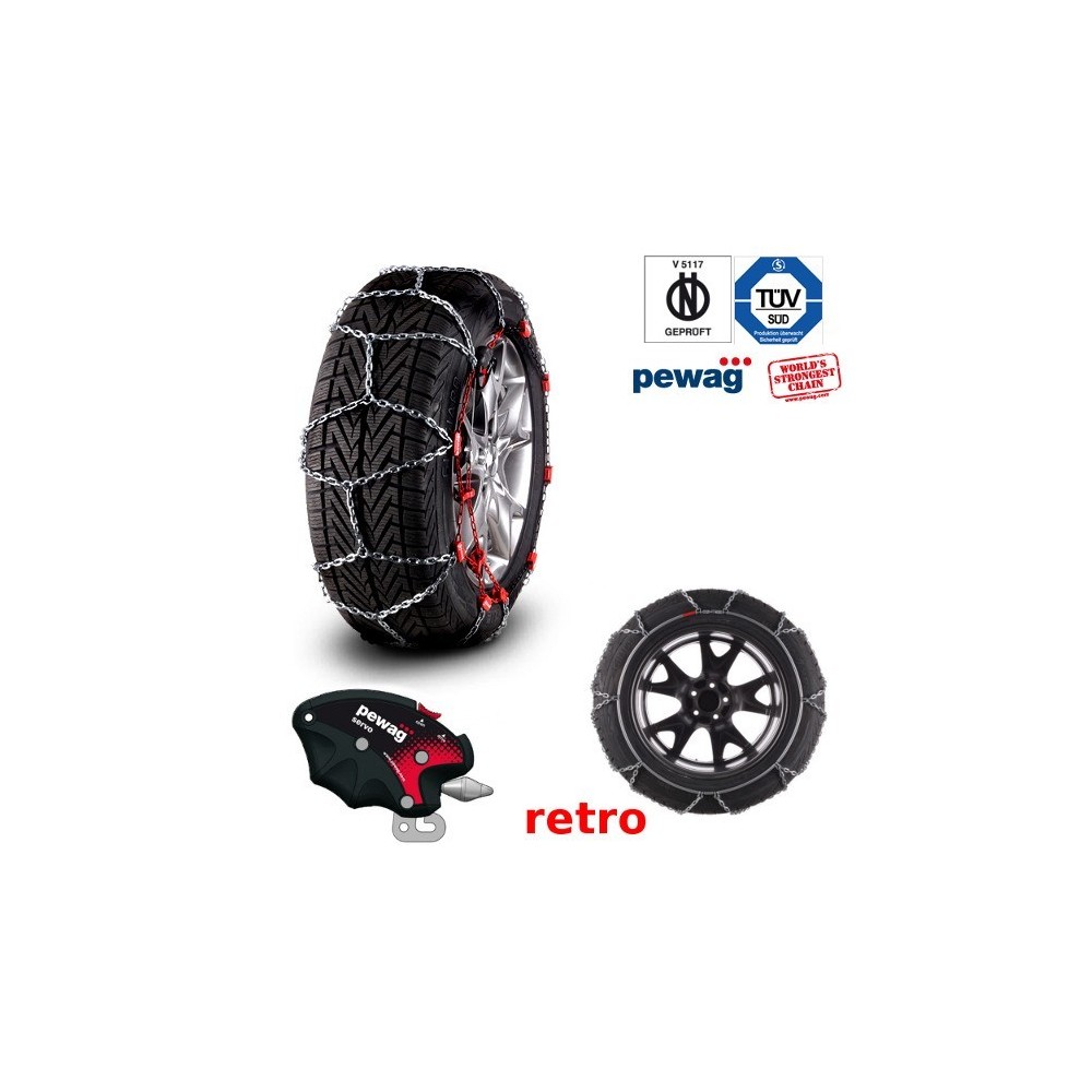 Pewag, leader mondiale nella produzione di catene presenta la serie SERVO-SUV, catena di alta qualita' con tecnologia servo per SUV. Chiusura semplice tramite dispositivo a sfera all'interno. La nuova generazione: la tecnologia servo brevettata garantisce il tensionamento automatico ottimale durante la marcia del veicolo. Non necessita di ritensionamento manuale. Per proteggere i cerchi, i pezzi esterni sono prodotti in materiali speciali. Il dispositivo autotensionante con design resistente ai graffi. Maglia da 3.55mm per una guida sicura su strada ed in campagna. Certificazione TUV. Omologazione GEPRUFT V5117.