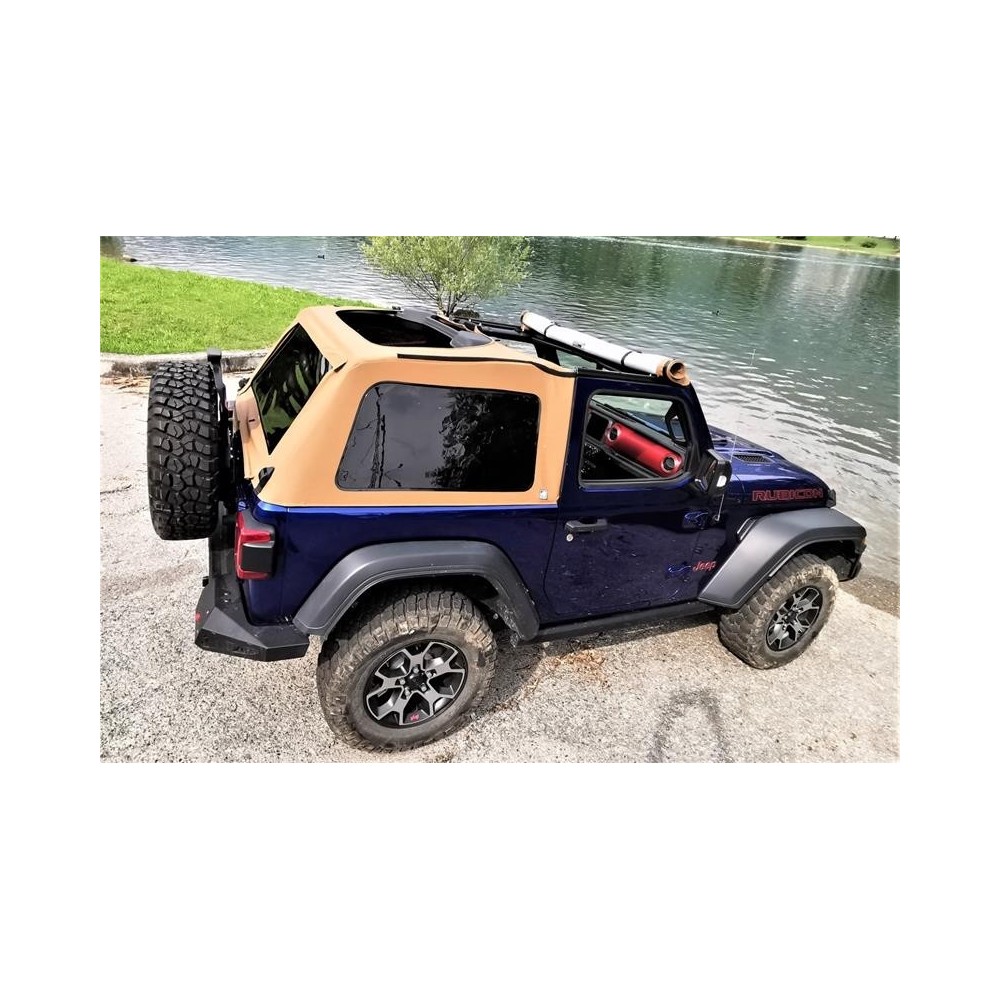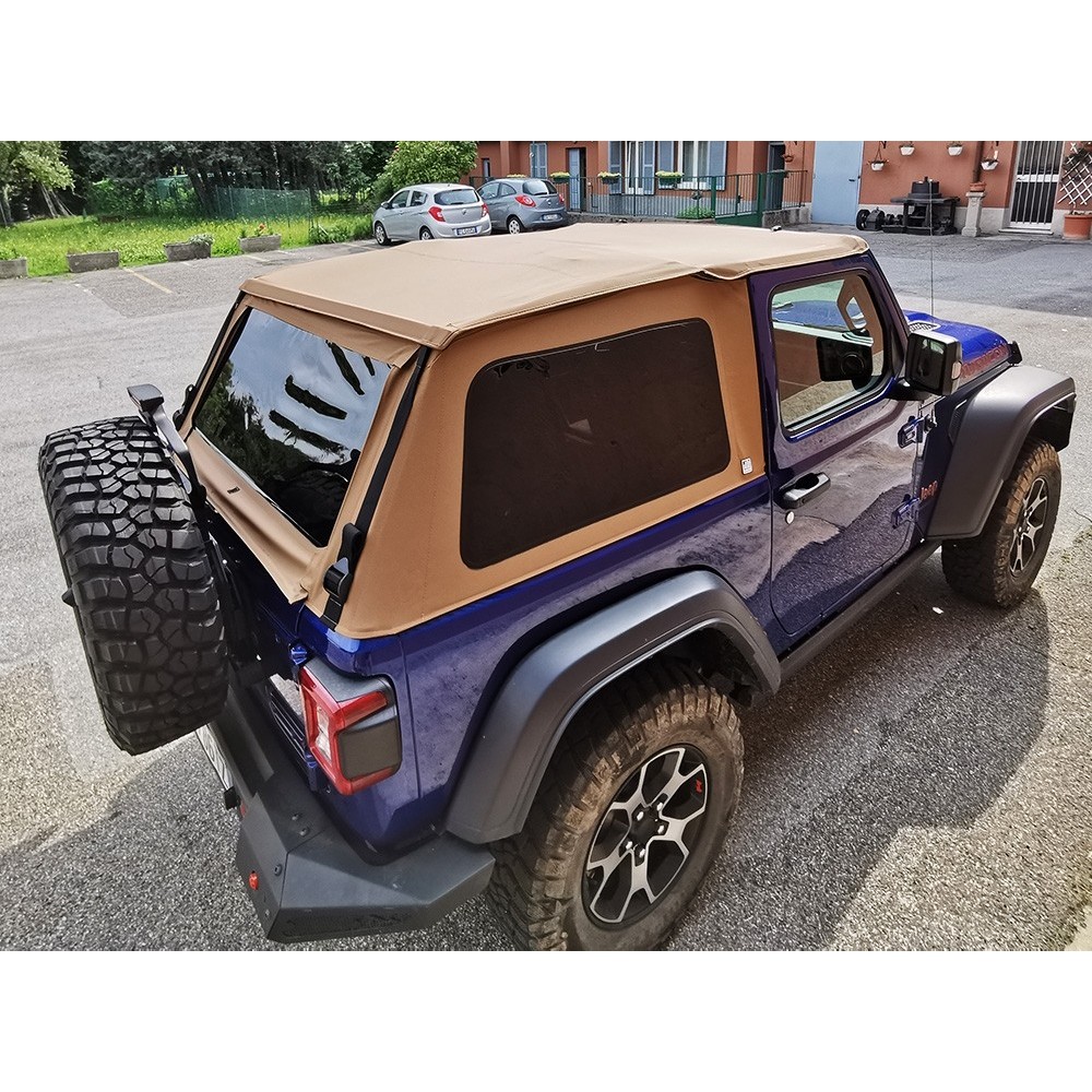 Il Suntop Ultimate e' stato ridisegnato e migliorato per adattarsi al meglio alla forma del nuovo Wrangler JL , per renderlo ancor piu' semplice e moderno, mantenendo sempre come priorita' stile e funzionalita'. E' formato dal telo superiore, hardware e finestre Fastback posteriori. NON NECESSITA DI ALTRE COMPONENTI PER ESSERE INSTALLATO. Il telo ULTIMATE si puo' aprire con 4 conformazioni differenti per assicurarvi sempre il perfetto livello di copertura, o di scopertura. Senza centine e telaio, appoggia direttamente sul rollbar. Un nuovo tessuto DEEP SAND completamente impermeabile garantisce la massima resistenza alle intemperie e la massima flessibilita' che unita alla resistenza ai maltrattamenti ed alle pieghe delle finestre SUN-SMOKE in finitura scura, permette di piegarlo tutte le volte che volete occupando pochissimo spazio nel vostro bagagliaio.