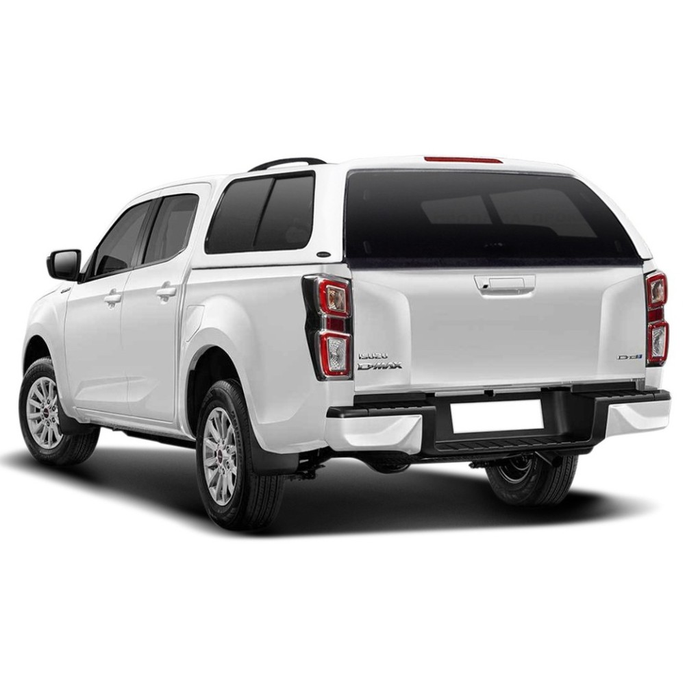 ATTENZIONE: PRODOTTO DISPONIBILE SU ORDINAZIONE. RICHIEDI INFO SUI TEMPI DI EVASIONE ORDINE. Compatibilita': Isuzu D-Max doppia cabina dal 2020. Hard top Carryboy in vetroresina, con primer, gia' pronto per la verniciatura. Con vetri per copertura totale cassone