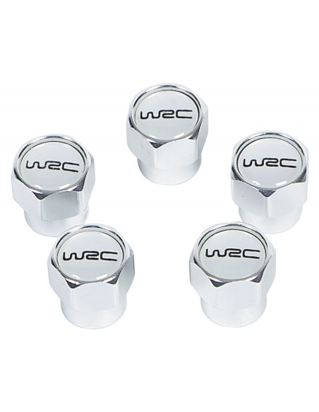 5 tappi valvola in alluminio, con marchio WRC, per valvole pneumatici. Universali.