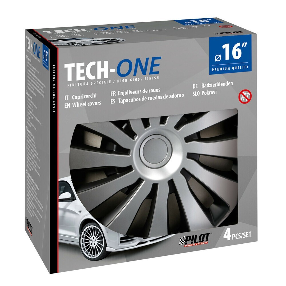Set 4 copricerchi In ABS, verniciatura doppio strato. Universali per tutti i cerchi in acciaio diametro R16. Ganci di fissaggio in resina per non graffiare il cerchio. Anello in acciaio temperato, garantisce massima e perfetta aderenza il cerchio in acciaio.