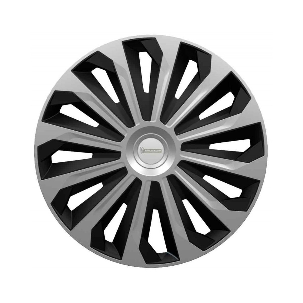 Copricerchi con sistema integrato Night Vision Security: il cerchietto centrale dove e' posizionato il logo Michelin e' in materiale riflettente ed aggiunge sicurezza ai viaggi notturni in quanto l'auto risulta percepibile nel buio anche lateralmente. Il sistema di fissaggio brevettato garantisce una tenuta sicura sulla ruota. Realizzati in ABS 100% con rivestimento metalizzato ad elevata brillantezza e bulloni cromati. Forniti in elegante box da 4 pezzi. Per cerchi di diametro 14''