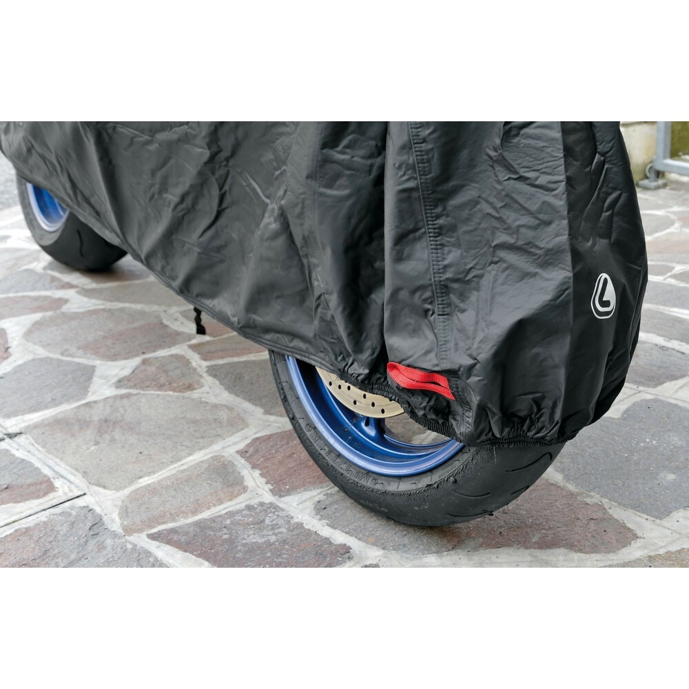Coverlux, coprimoto, protegge da agenti atmosferici, inquinamento, sporco di uccelli, resina degli alberi...In tessuto poliestere 200D, Trattamento impermeabilizzante in poliuretano con cuciture nastrate, Morbida felpatura interna in polipropilene 80g. Resistente ai raggi UV. Bordatura anteriore e posteriore elasticizzata. Cinghia sotto scocca anti-vento. Asole rinforzate per l'applicazione di antifurti sulla ruota anteriore e posteriore. Sacca portatelo in dotazione. Disponibile in taglia S (183x119x89cm) -M (203x119x89cm) -L (229x125x99cm) -XL (246x127x104cm)