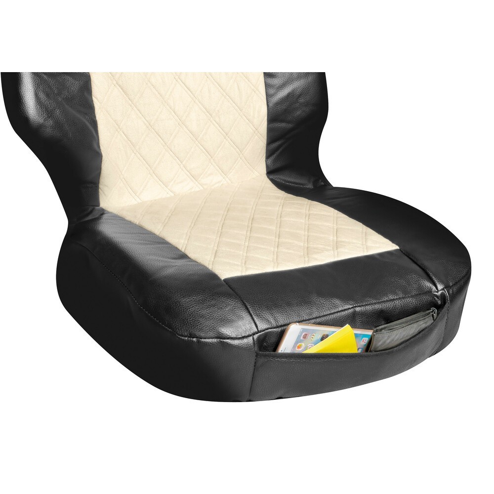 Coprisedile singolo in similpelle e suede trapuntato nero beige per camion