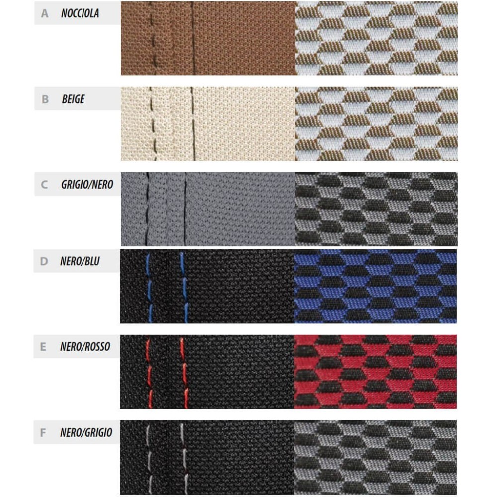 Lavorazione artigianale con tecnologia Cad/Cam e con cura nei minimi particolari per un montaggio ''Perfect-Fit''. Seguono scrupolosamente la sagoma dei sedili originali e li coprono completamente come un rivestimento. Quando installate sono un corpo unico con i sedili originali. Doppie cuciture a vista. Tessuto tecnico in poliestere certificato. Altissima resistenza alla rottura, abrasione, sfregamento, peeling, scolorimento, lavaggio. Non scolorisce al sole e nei ripetuti lavaggi. Imbottitura di supporto in spessa spugna antipiega da 8 mm accoppiata con maglina. Fianchi e retro elasticizzati, con spugna da 4 mm accoppiata a maglina. Taglio e cuciture simili al sedile originale. Con tasche di serie. Completo di aperture per poggiatesta, airbag e copripoggiatesta, copribraccioli, ecc. in conformita' alle caratteristiche dell?auto. Prodotto in Europa utilizzando tessuti italiani. Compatibilita': Fiat Bravo dal 02/2007 al 11/2015. Composizione: Sedili con o senza bracciolo anteriore, schienale posteriori ripiegabili (1/3 + 2/3). Colori disponibili: Grigio-Nero, Nero-Blu, Nero-Rosso, Nero-Grigio. N.B. In fase di ordine comunicare il colore scelto