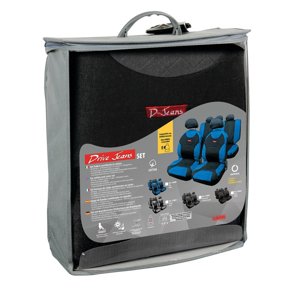 Kit completo coprisedili fodere auto universali cotone Drive Jeans Grigio