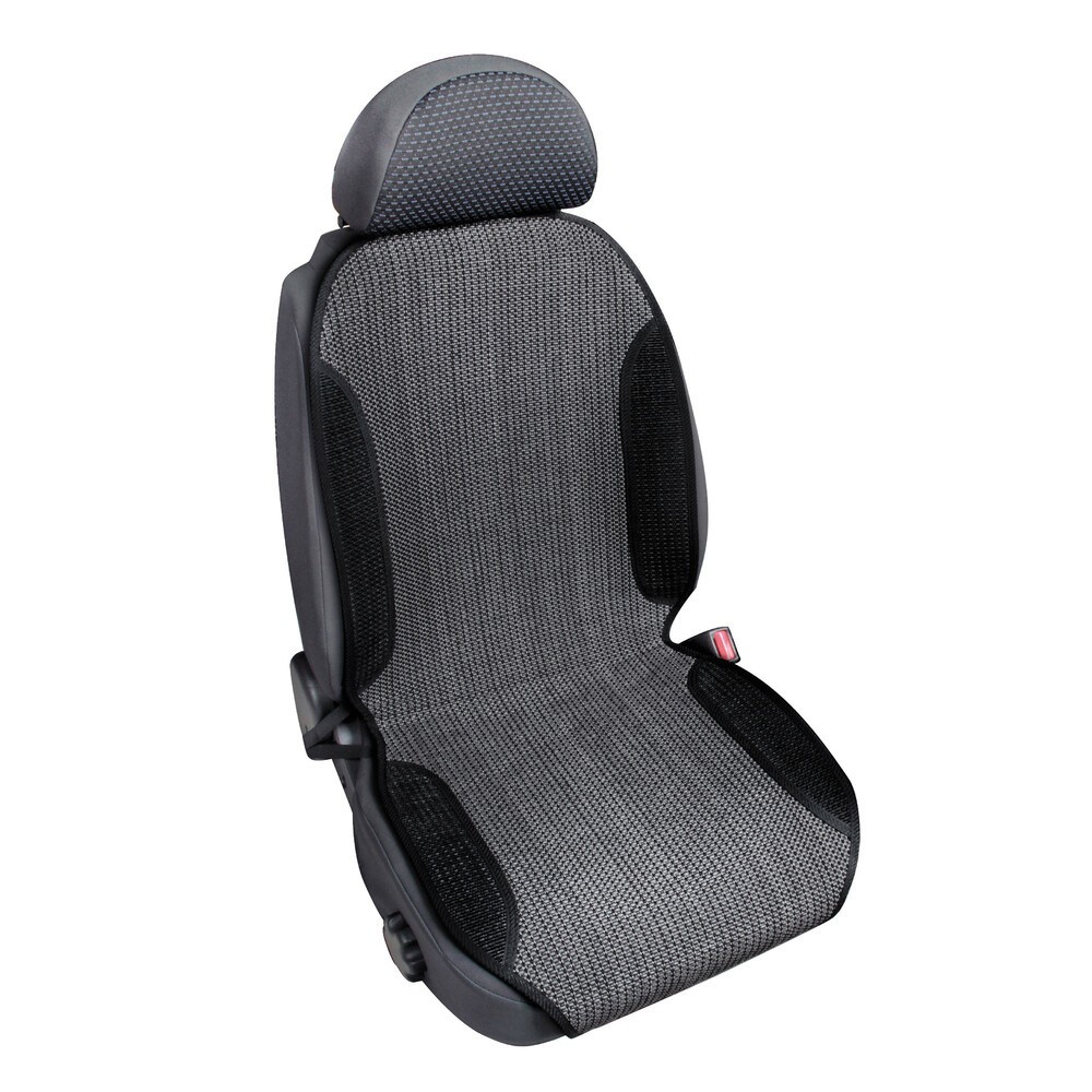 Breeze, schienale ventilato in carta tessile. Lo speciale tessuto aerato e il doppio supporto a molle (sedile e schienale) garantiscono maggior sostegno e freschezza durante il viaggio. Seduta larga 50cm, universale per auto, camper e veicoli commerciali equipaggiati con poggiatesta. Si installa in pochi minuti e si fissa utilizzando gli elastici in dotazione. Non compromette gli Airbag dei sedili.