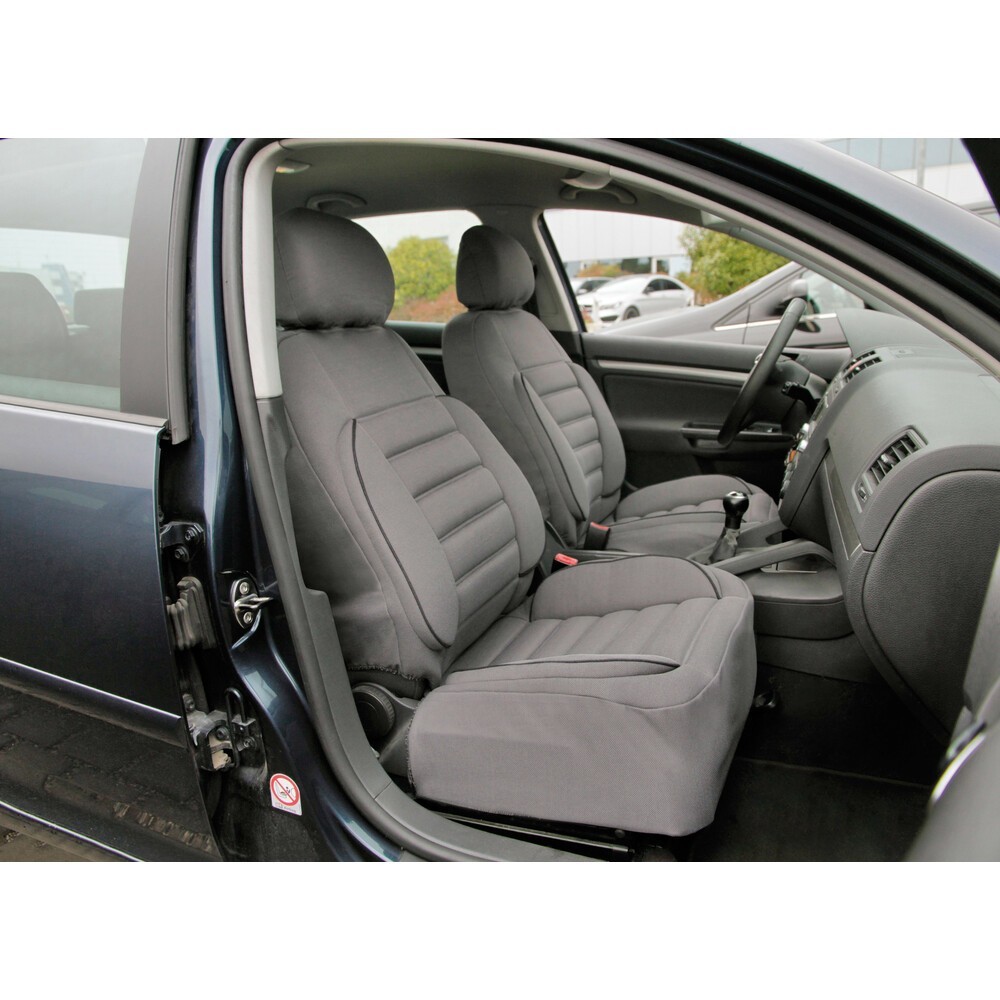 Qualita' superiore con seduta e schienale super-imbottiti e trapuntati. Rivestimento anteriore e tessuto elasticizzato in jacquard 100% coordinato. Imbottiture di contenimento sportive. Tasca posteriore sul retro. Completo di 2 copri poggiatesta. Universali per la maggior parte delle vetture con sedili standard, con e senza airbag. Universali per la maggior parte dei sedili standard. Compatibili con sedili forniti di airbag laterali. Colori resistenti alla luce. Imbottitura morbida. Copri poggiatesta inclusi