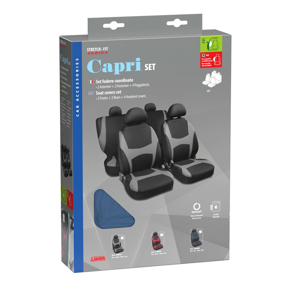 Kit completo coprisedili fodere auto universali poliestere Square. Blu