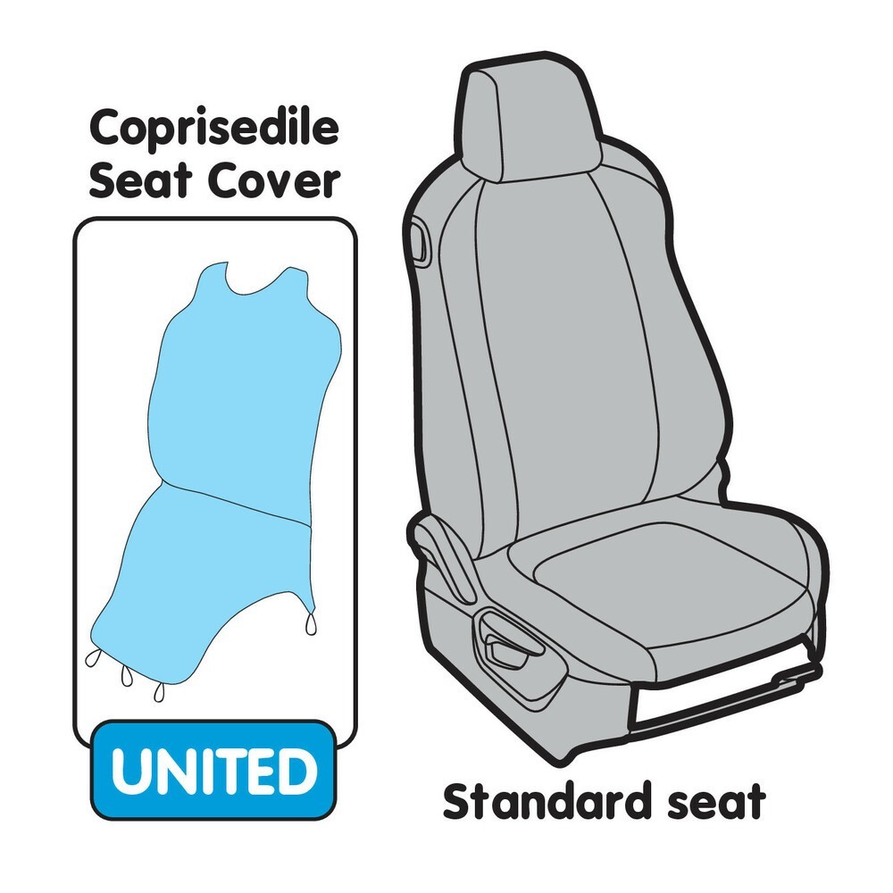 Coprisedile singolo elasticizzato in poliestere, adatto a vetture con sedili standard, non reclinabili. Facile da montare, si fissa al sedile tramite le cinghie in dotazione.