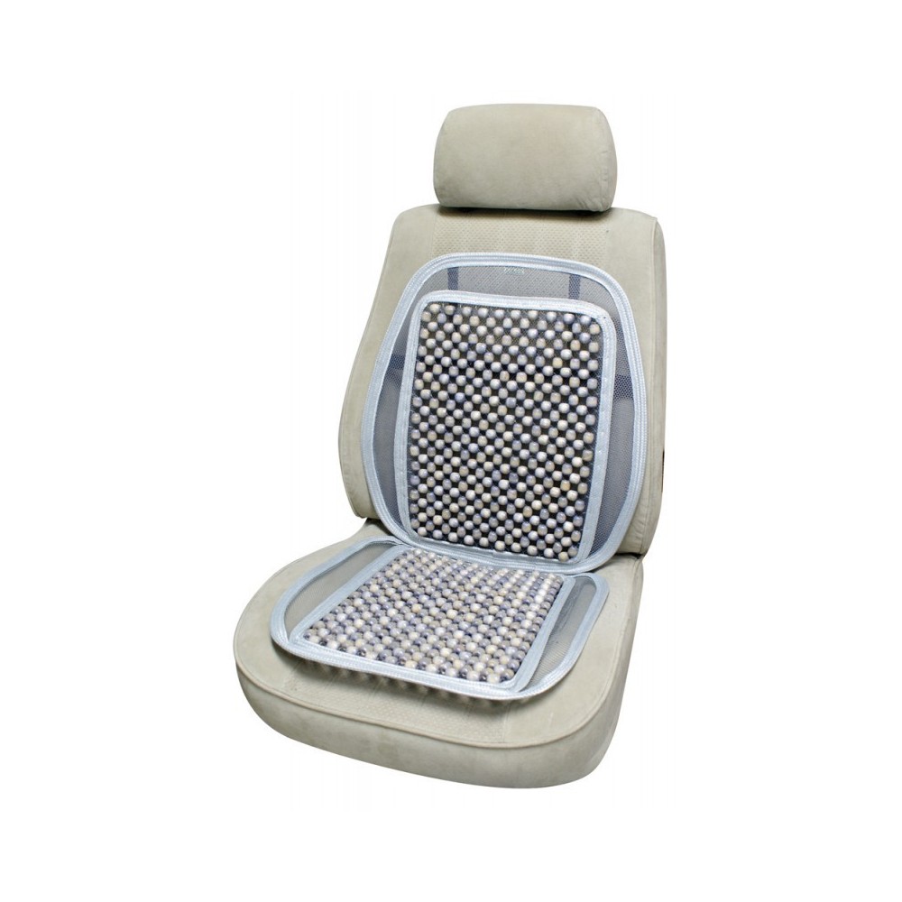 Coprisedile anteriore pluristagionale dotato di supporto lombare regolabile a salvaguardia della colonna vertebrale e quindi particolarmente indicato per chi ha problemi di schiena o per chi e' costretto a lunghi viaggi. Le sfere ellittiche in legno naturale stimolano la circolazione del sangue producendo un effetto massaggiante che allevia lo stress delle lunghe percorrenze. Adatto a qualsiasi sedile di auto, furgoni, fuoristrada e autocarri. Ideale anche per la casa e l'ufficio. Colore grigio.