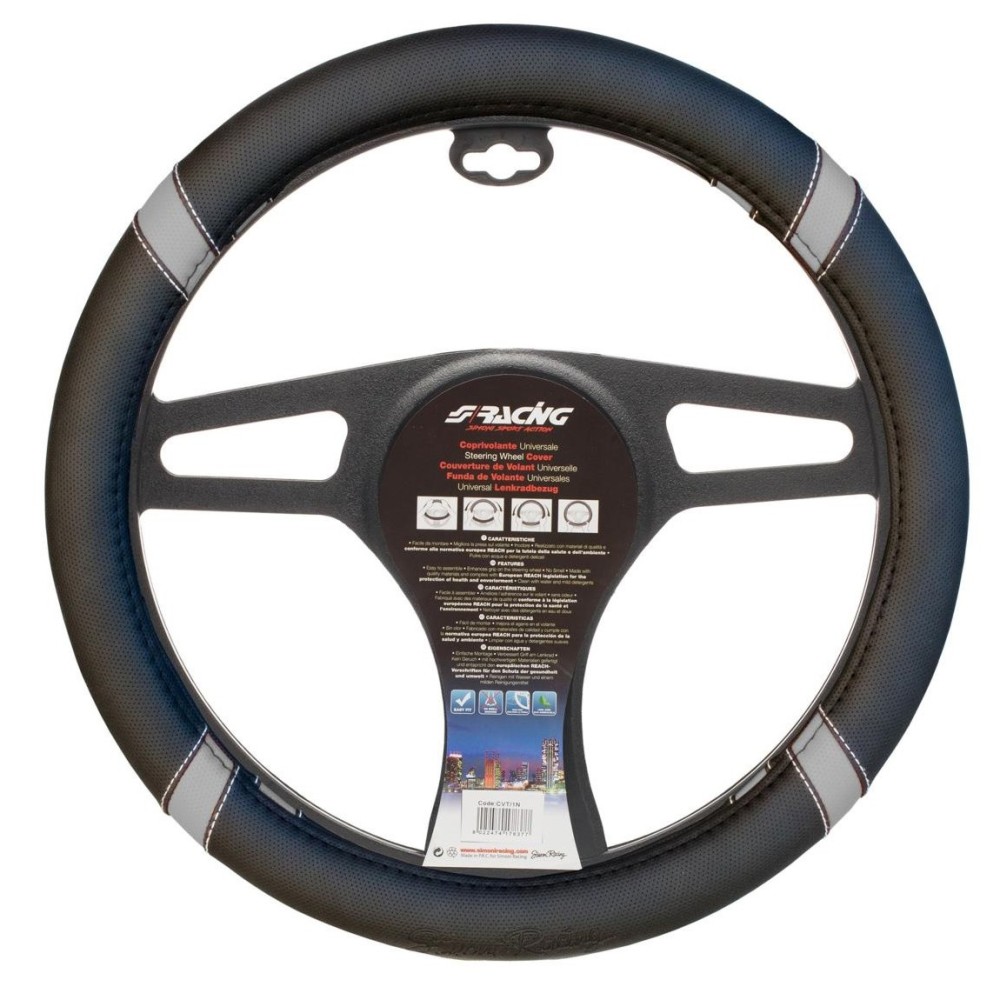 Coprivolante auto diametro 37 39cm Simoni Racing eco pelle nera inserti gri