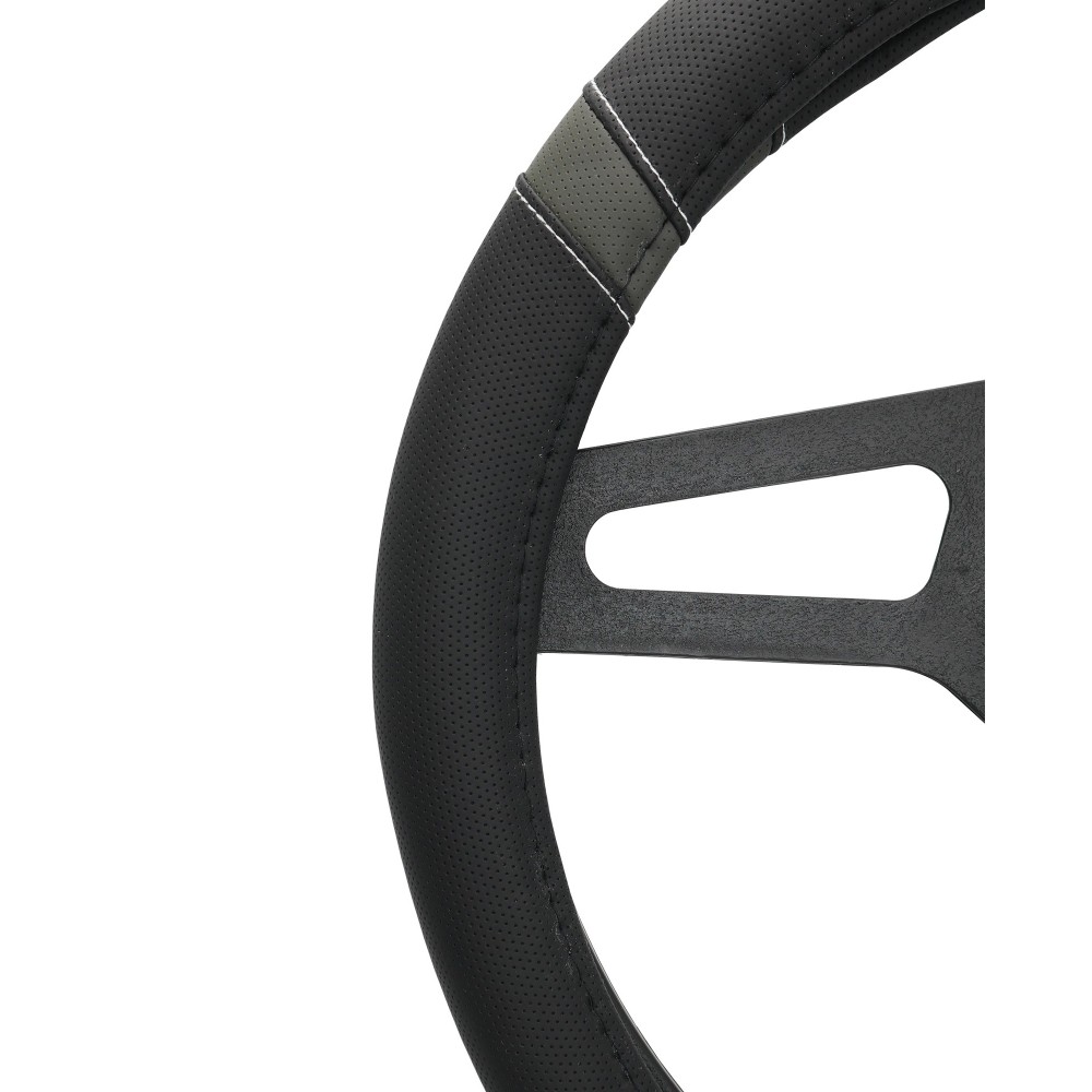 Modello Cross Grey Simoni Racing. Cod. CVT/44B. Coprivolante universale per volanti con diametro compreso tra 37 e 39cm. In eco-pelle nera forata con inserti grigi