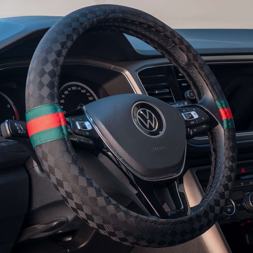 Coprivolante in tessuto nero con inserti rossi e verdi. Per volanti con diametro 37-39cm