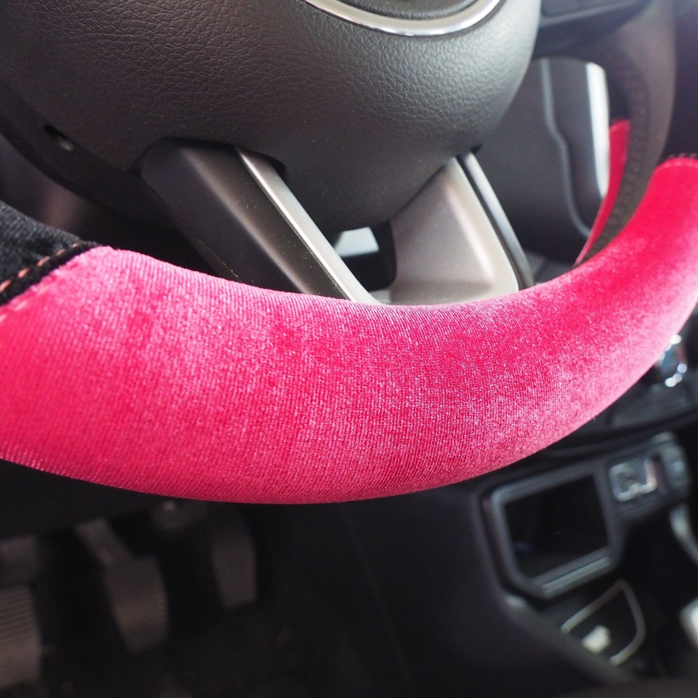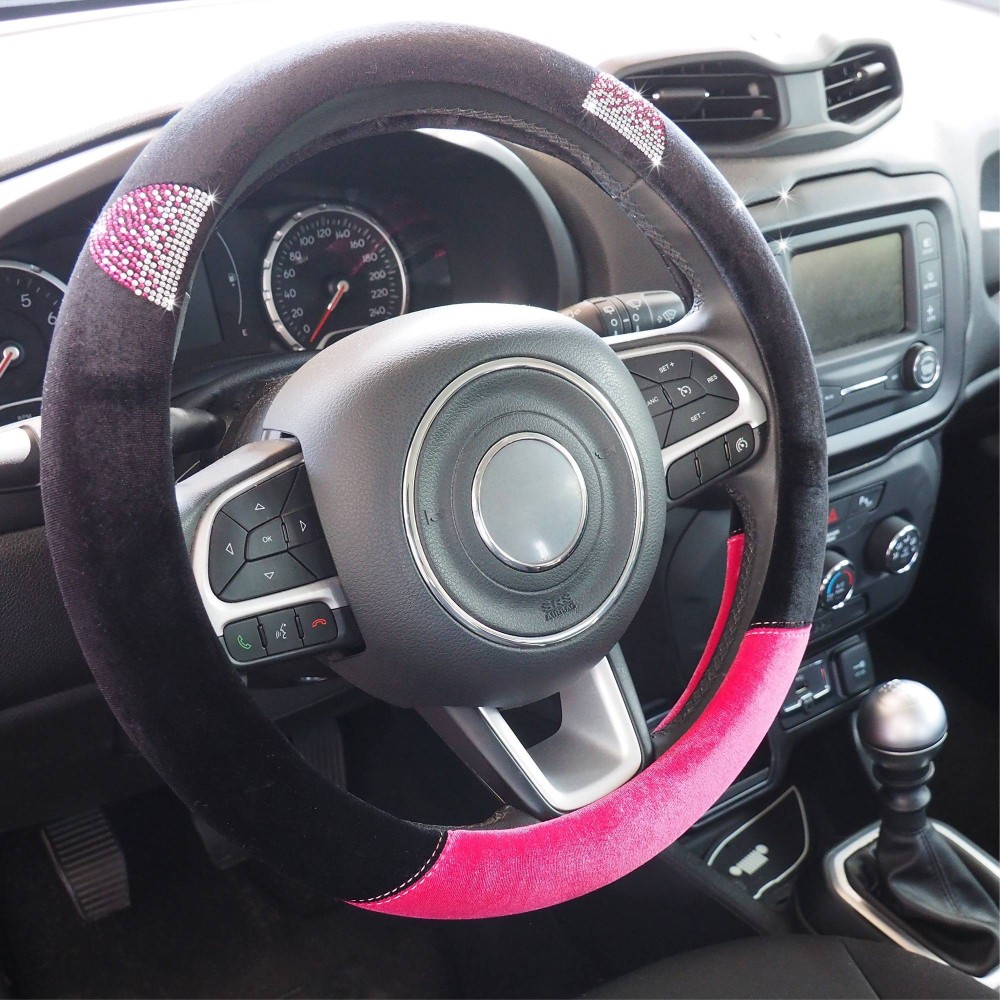 Per volanti con diametro 37-39cm. In microfibra nera e rosa, con strass