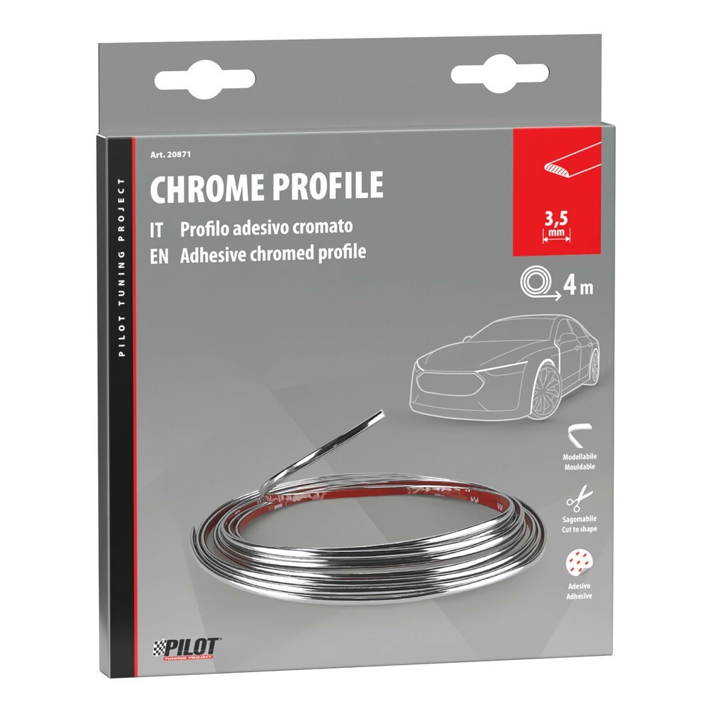 Profilo adesivo cromato nero 25mt - 4mm