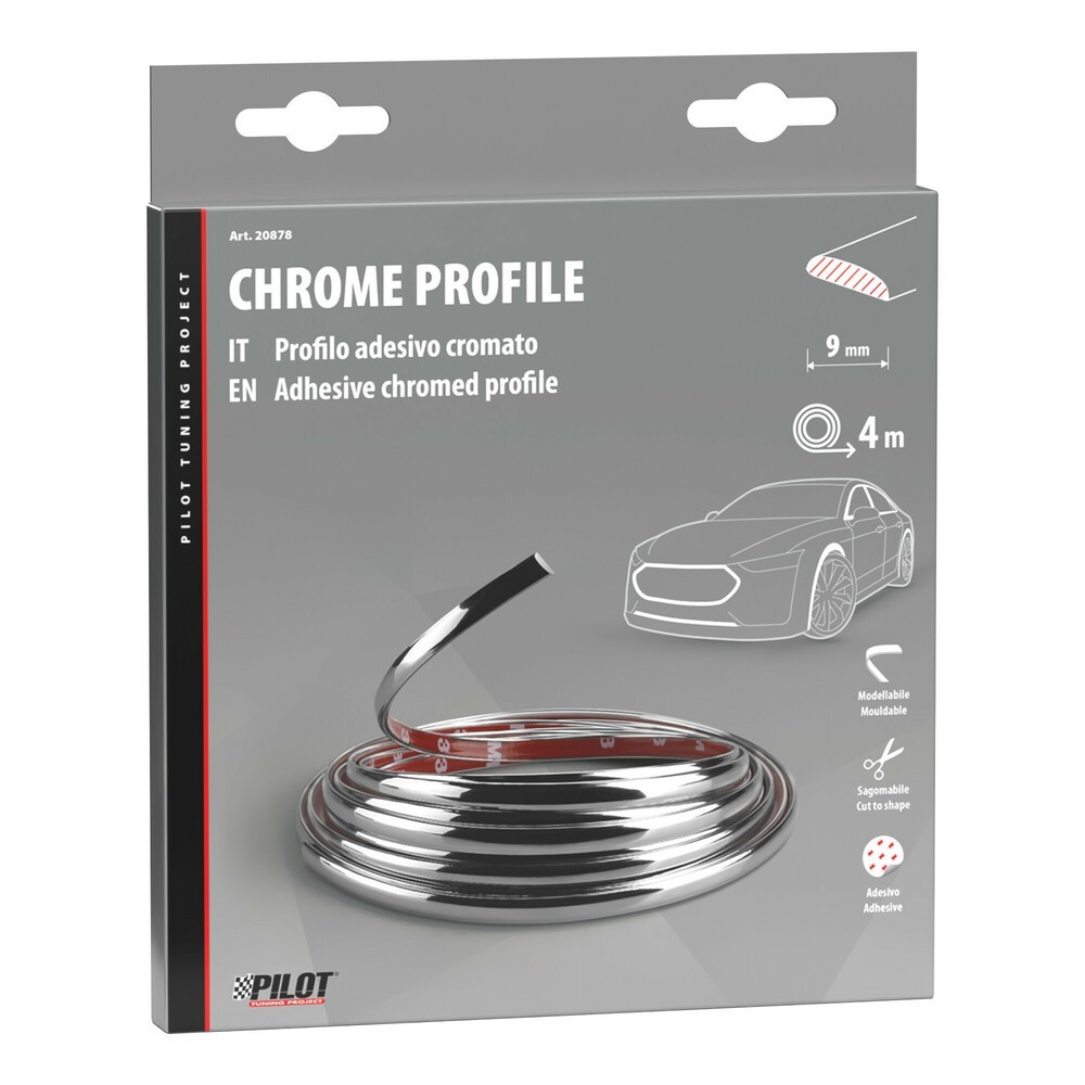 Profilo adesivo cromato auto 4 metri larghezza 9mm