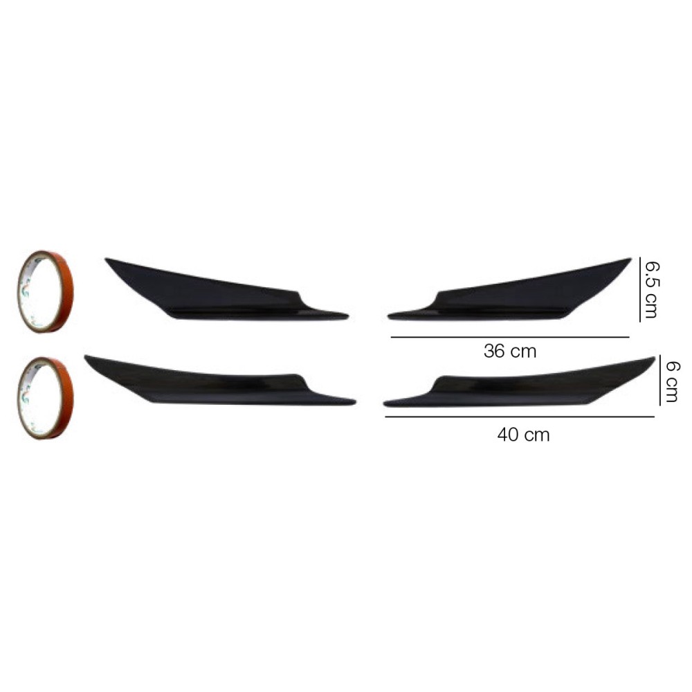 Kit 4 alette canards aerodinamiche per paraurti ABS nero
