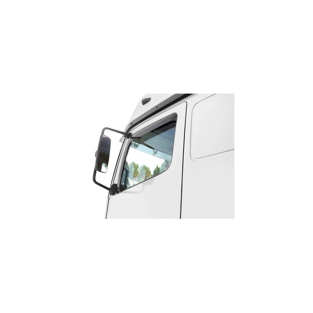 Compatibilita': Renault Magnum dal 09/1996 al 12/2007. Set 2 deflettori aria per camion, lasciano entrare aria dall'esterno ed evitano che la pioggia e il pulviscolo entrino nell'abitacolo. I deflettori contribuiscono alla fuoriuscita del calore e del fumo di sigaretta garantendo il ricambio dell'aria. Riducono la turbolenza ed il rumore dell'aria durante la guida con finestrini abbassati. Prodotti con materiale antiurto e antischeggia di ultima generazione in tonalita' ''fume' scuro'', utilizzabili anche come deflettori parasole.