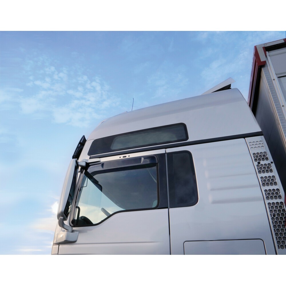 Compatibilita': Man TGA dal 03/99 al 05/2010 - TGL dal 05/2005> - TGM dal 10/2005> - TGS dal 09/2007> - TGX dal 09/2007 al 08/2014. Set 2 deflettori in policarbonato ad iniezione. Montaggio esterno non-invasivo tramite adesivo speciale, senza viti, senza staffe di fissaggio e senza inserimento forzato tra la guarnizione del vetro e la carrozzeria. Lasciano entrare aria dall'esterno ed evitano che la pioggia e il pulviscolo entrino nell?abitacolo. Riducono la turbolenza ed il rumore dell'aria durante la guida con finestrini abbassati. Prodotti con materiale antiurto e antischeggia di ultima generazione in tonalita' fume' scuro, utilizzabili anche come deflettori parasole.