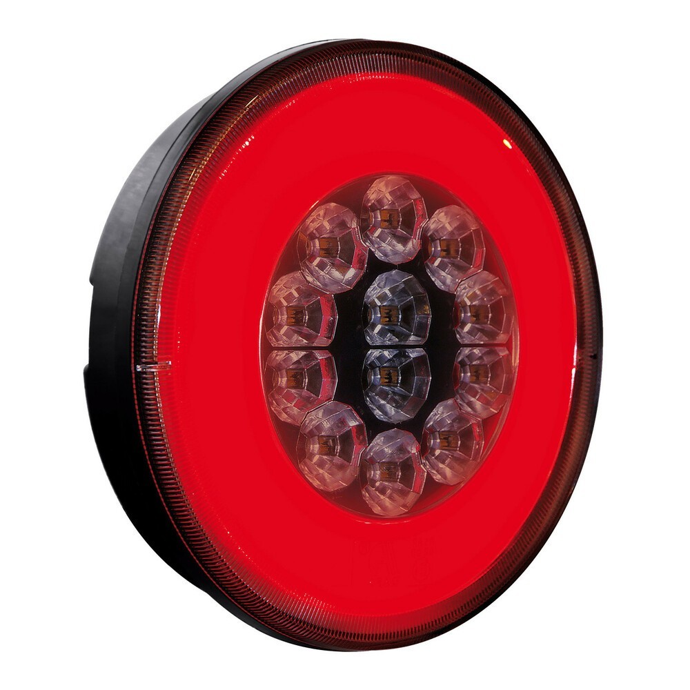 Fanale rotondo posteriore retromarcia e peosione a Led codice 41535, 12/24V. Struttura in ABS e lente in PMMA. Dimensioni: diametro 140mm, 29 led, Omologazione E. Per le dimensioni specifiche vedi foto allegata