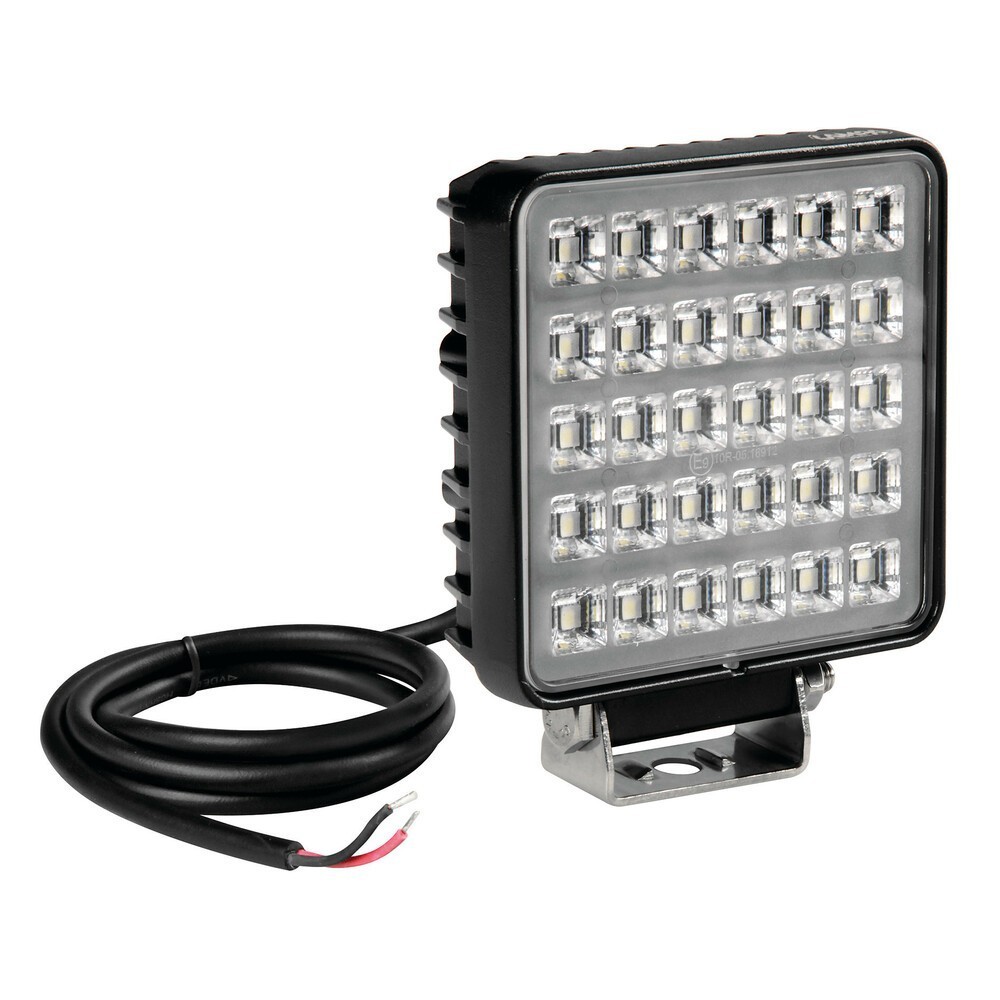 Faro ausiliario a 30 Led con struttura in alluminio, impermeabile IP67. Staffa in acciaio completa di viti per il fissaggio. La speciale struttura lenticolare 'Quadri-focale' del singolo led aumenta l'ampiezza del fascio luce e ne migliora la performance luminosa (30W, 6000K - 2400 lumen - 30W). Particolarmente indicato per fuoristrada, camion, trattori, muletti, escavatori, ecc. Omologazione: E R10