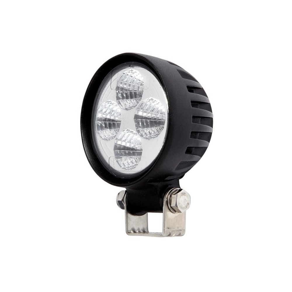 Marca: RING. Faro da lavoro rotondo 4 LED 12/24V 12W (4x3W led) 700 Lumens. Fascio espanso. Lente chiara. Corpo in alluminio pressofuso e lente in policarbonato. Lunghezza cavo: 500mm. Dimensioni: 135x83x66mm