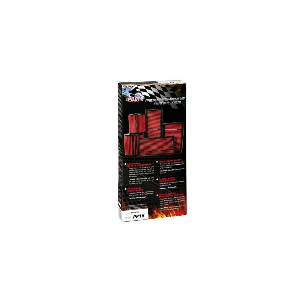 Filtro aria Pilot performante ad alte prestazioni, progettato per garantire una portata d'aria maggiore rispetto ai tradizionali filtri in carta ed ottenere una migliore performance del motore. Lavabile e riutilizzabile piu volte per una lunga durata e per un risparmio nei costi. I materiali utilizzati per la produzione sono i migliori sul mercato, Poliuretano, leggero e flessibile ed inattaccabile da agenti chimici, Cotone, naturale e traspirante, Rete in alluminio anodizzata e trattata con resina epossidica. A differenza dei filtri in carta, non necessita di sostituzione e puo' essere utilizzato per tutta la vita del veicolo!. Ad intervalli di 20-25.000km il fitro puo essere lavato e rigenerato. Le migliaia di microscopici filamenti in cotone assorbono l'olio appositamente formulato, trattengono tutte le impurita' dell'aria, proteggono il motore ed assicurano sempre il flusso ottimale di aria.