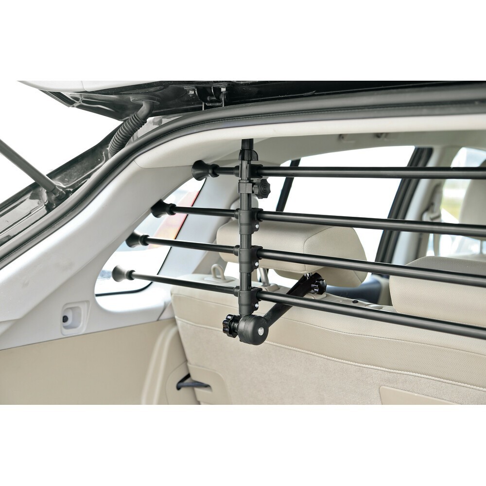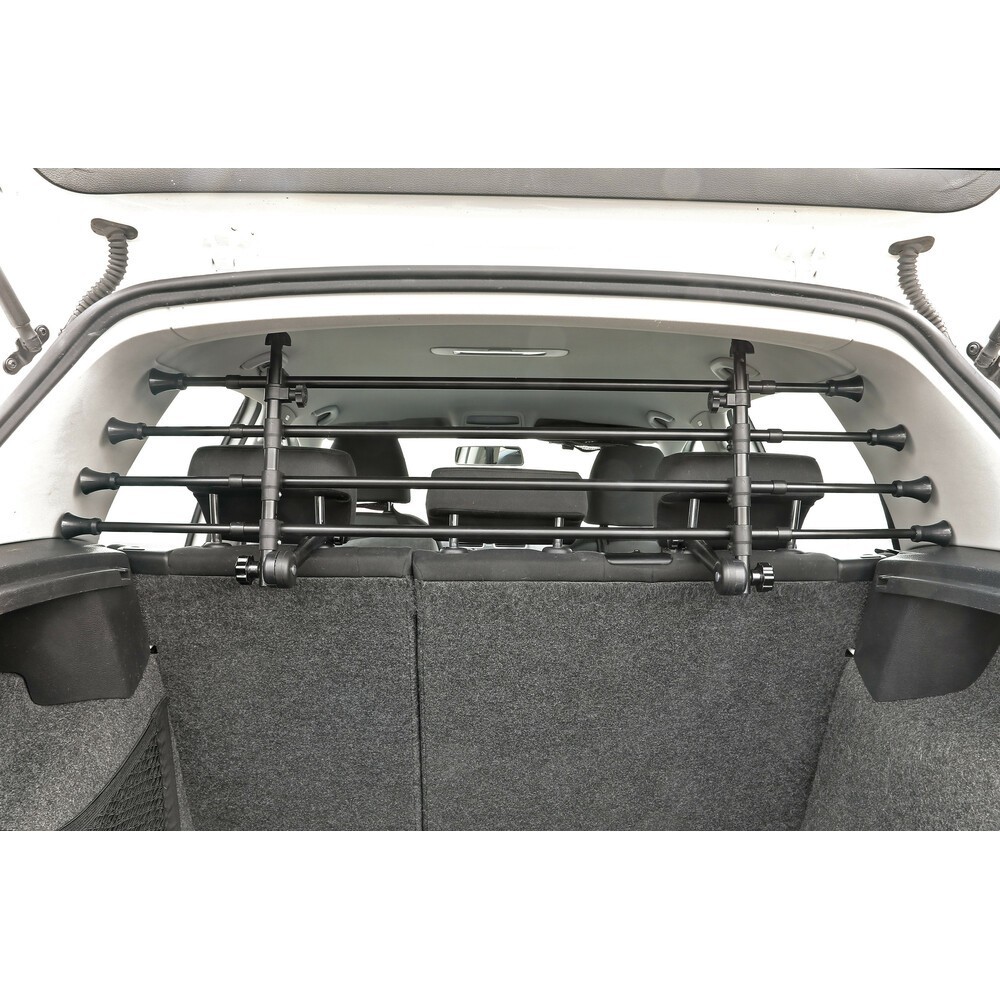 GRG-9 Compact, griglia divisoria telescopica 4 elementi, applicazione al poggiatesta. Per applicazione alle aste poggiatesta posteriori. Di facile montaggio, senza praticare alcun foro. Solida e sicura senza alcuna parte contundente pericolosa per la sicurezza degli animali e dei passeggeri. Estensibile in larghezza ed altezza per adattarsi alle dimensioni del vano bagagli. Dimensioni: larghezza da 85 a 140cm - altezza da 30 a 55mm