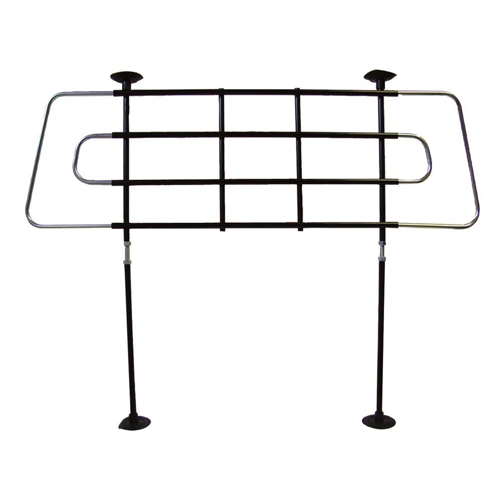 Separatore cani che consente due diverse applicazioni: al pianale e allo schienale impiegando le due staffe speciali arcuate fornite in dotazione. Altezza minima: 78cm - Altezza massima: 115cm - Larghezza minima: 85cm - Larghezza massima: 140cm