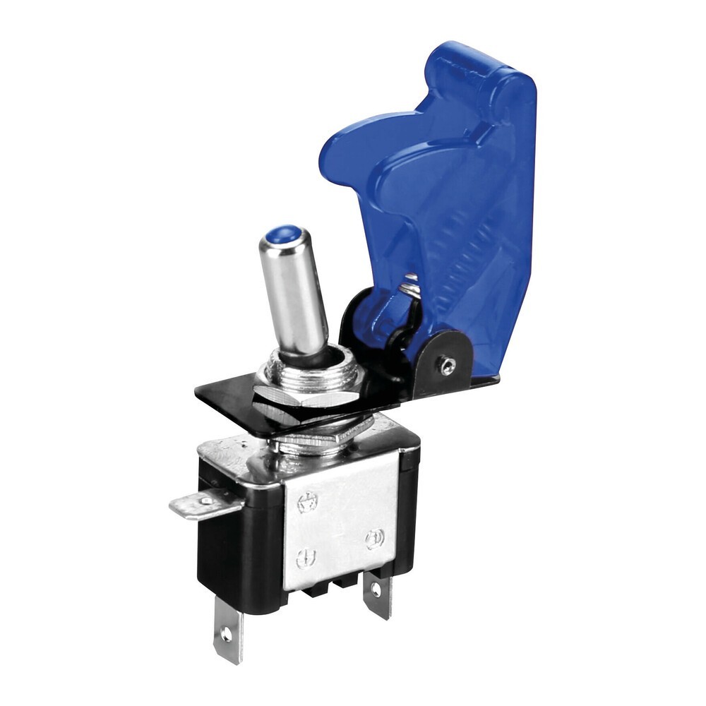 Interruttore a leva con sicura Spia BLU auto 12V 20A