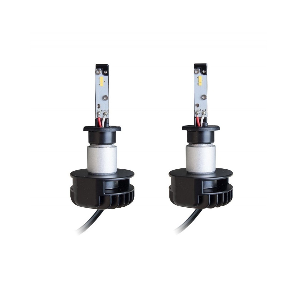 Kit composto da 2 lampadine H1 complete di cablaggi e centralina. Dissipatore di calore passivo in alluminio. Potenza 16W. Tipo CREE LED. Voltaggio 12-24V DC. Lumen a lampada 2200. Grado di impermeabilita' IP65. NO Canbus. Queste lampadine a led producono una luce intensa e definita, proiettando sulla strada fino al 45% di luce in piu'. Il sistema di raffreddamento integrato passivo a ingombro ridotto consente un'installazione semplice su qualsiasi tipo di faro. La struttura compatta si adatta anche a fari di piccole dimensioni. I led sono collocati nella stessa posizione in cui si trova il filamento delle lampade alogene, proiettando un fascio luminoso praticamente uguale ma piu' potente da 6000K. Non e' previsto l'utilizzo di warning canceller, solo in alcuni e rari casi aggiungere la resistenza a 50W ( ns cod. 50W). Lampadina dotatata di prolunga in alluminio removibile. ATTENZIONE: In alcune vetture, per una corretta installazione e' necessario un adattatore per lampade, si possono utilizzare quelli in commercio per le lampade xeno, ma sono da modificare artigianalmente. Su VW Golf 7 non monta, questa vettura monta un kit specifico. Prima dell'acquisto verificare lo spazio disponibile tra vano porta lampada e tappo di chiusura faro