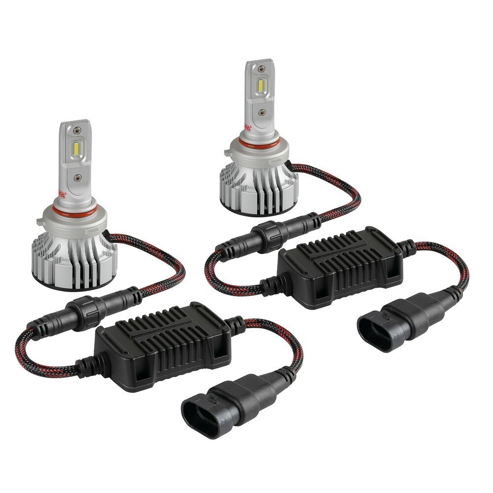 Kit di conversione fari alogeni in fari a led. Altissima emissione luminosa, maggiore di qualsiasi lampada alogena. Fascio di luce equiparabile alla lampada alogena. Installabili senza modifiche ai fanali. Luga durata (25.000 ore). Raffreddamento con ventola interna ad alta velocita' con motore a magnete permanente senza spazzole. Scocca in alluminio con trattamento per una migliore dissipazione del calore, sistema intelligente di controllo temperatura. Centralina Interna. Caratteristiche: Led: 2 Special CREE Chips, Tensione: 9-32V, Attacco: H10-HB3 9005 (P20d), Potenza: 36W, Luminosita': 6500K, Lumen: 3000lm (cadauna).