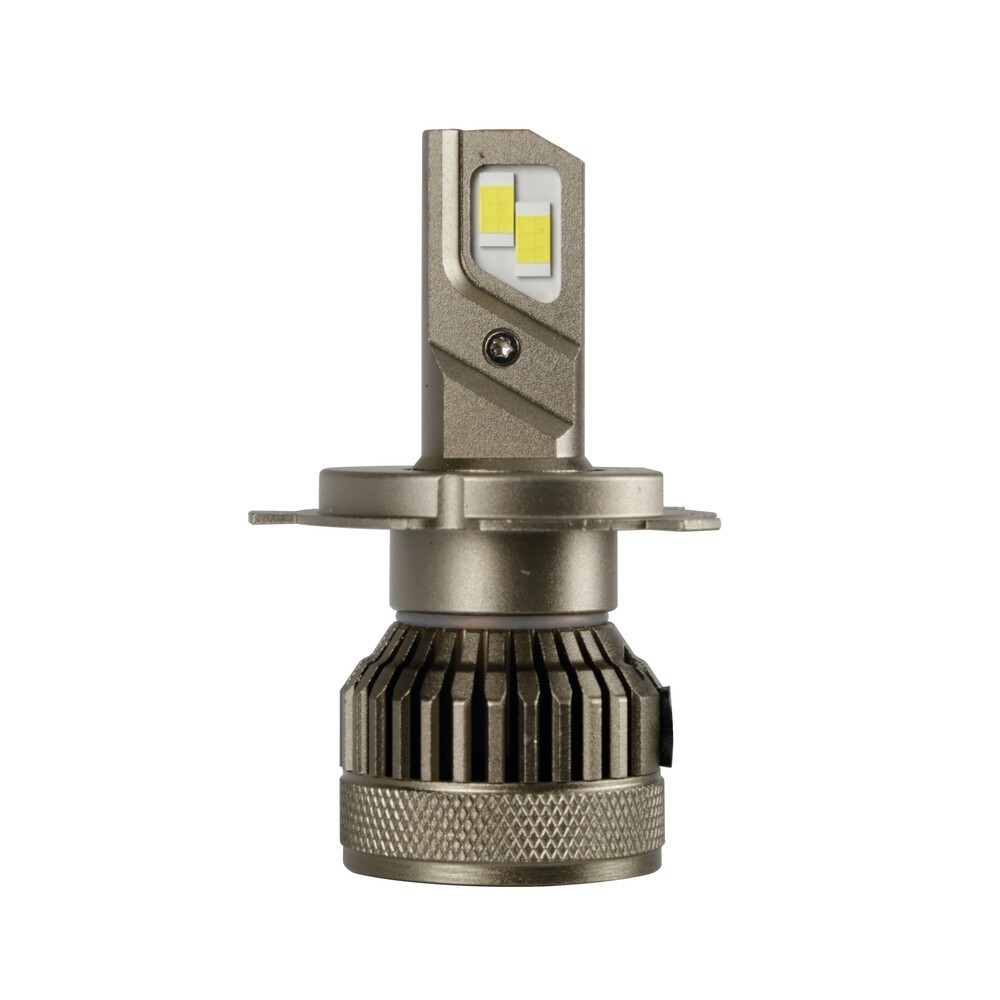 Lampade a led per conversione fari alogeni. Altissima emissione luminosa, maggiore di qualsiasi lampada alogena e con fascio luce equiparabile alla lampada alogena quindi installabile senza modifiche al fanale. LED chips speciali ''G-XP type'' di ultima generazione ad uso automobilistico, con luce straordinariamente brillante a tecnologia fredda, di lunga durata. Centralina esterna, raffreddamento con ventola ad alta velocità. Tensione 9/32V, Lampada (H4), Attacco P43t, Potenza 45W, Luminosità 6.500K, Lumen 3600 lm (1 pc)