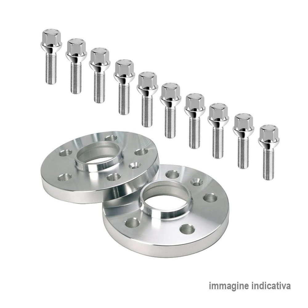 Coppia distanziali da 20mm cad. con bulloni sferici. Caratteristiche: PCD 5x112 - Mozzo 66.5mm - Filetto M15x1.25.