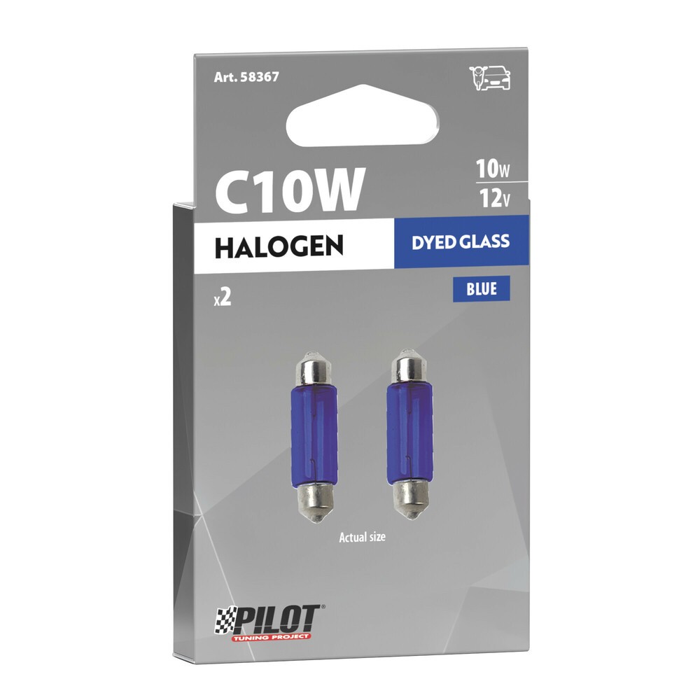 Pezzi per confezione: 2. Volt: 12V. Watt: 10W. Attacco: SV8.5-8 (Siluro 35mm). Vetro tinto per una luce ancora piu' intensa