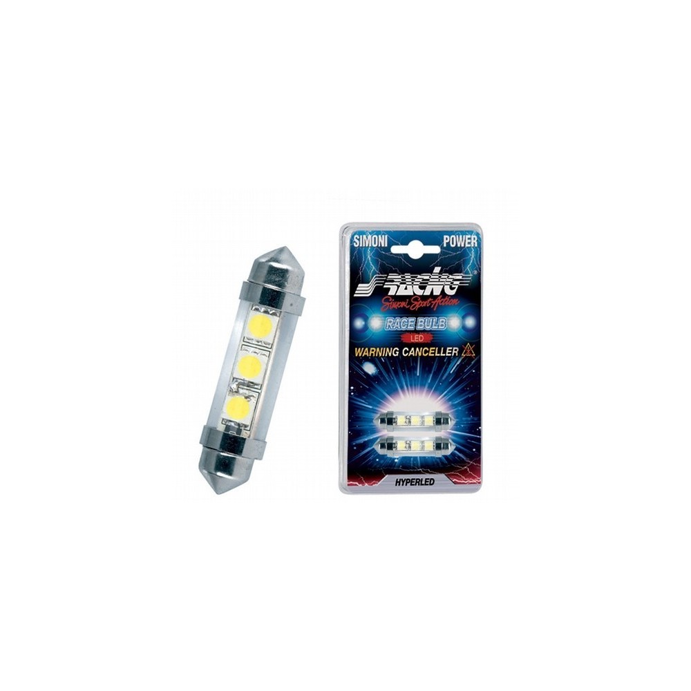 Kit 2 lampadine a 3 microled ad alta brillantezza con resistenza integrata da 3 watt. Led bianco, 36mm. ATTENZIONE: Sebbene dotate di una resistenza interna compatibile con la grande maggioranza delle auto, su alcuni modelli potrebbero comunque accendersi spie sul cruscotto. In tal caso consigliamo di aggiungere un'ulteriore resistenza per spegnere la spia eludendo il computer di bordo.