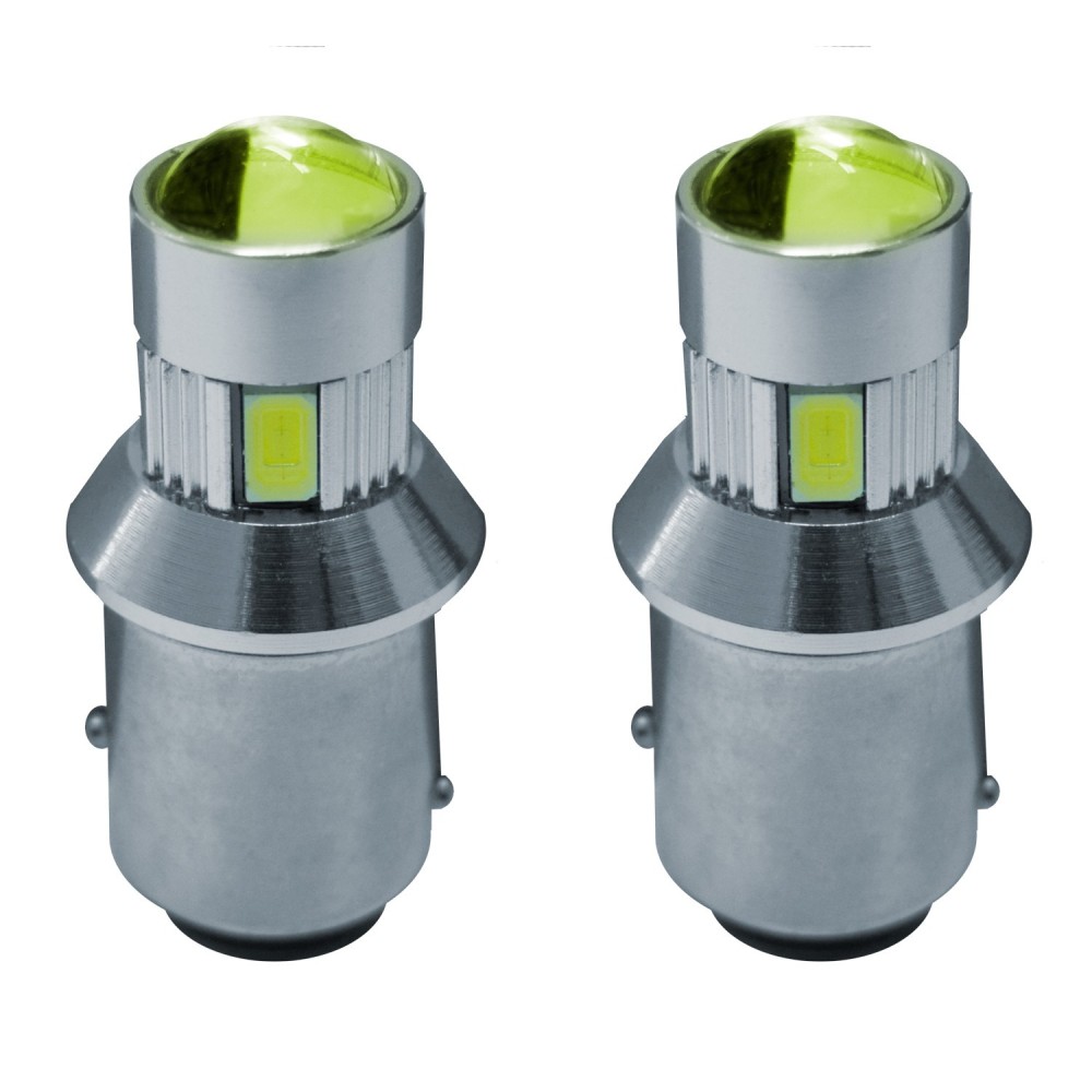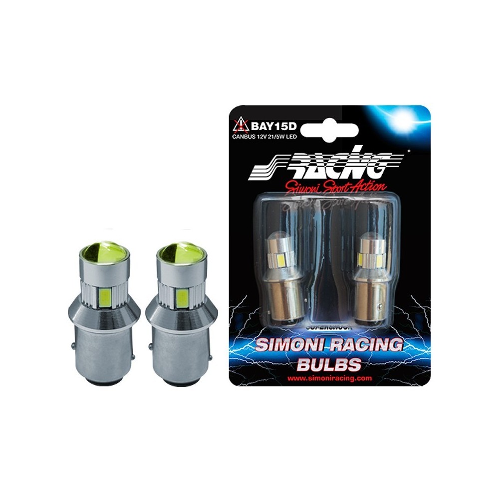 Kit 2 lampadine Bay15D lenticolari a 6 led ad alta potenza, resistena warning canceller integrata e no polarity. Led ultrabianco. ATTENZIONE: Sebbene dotate di una resistenza interna (Canbus) risultando cosi' compatibile con la grande maggioranza delle auto, su alcuni modelli potrebbero comunque accendersi spie sul cruscotto. In tal caso consigliamo di aggiungere un'ulteriore resistenza per spegnere la spia eludendo il computer di bordo.