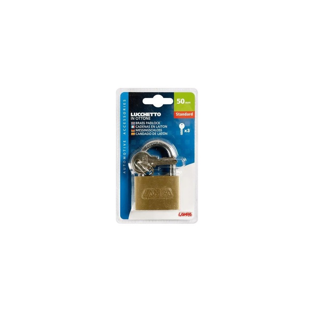 Standard, lucchetto in ottone, 3 chiavi in dotazione. Per tutte le dimensioni vedi foto allegata.