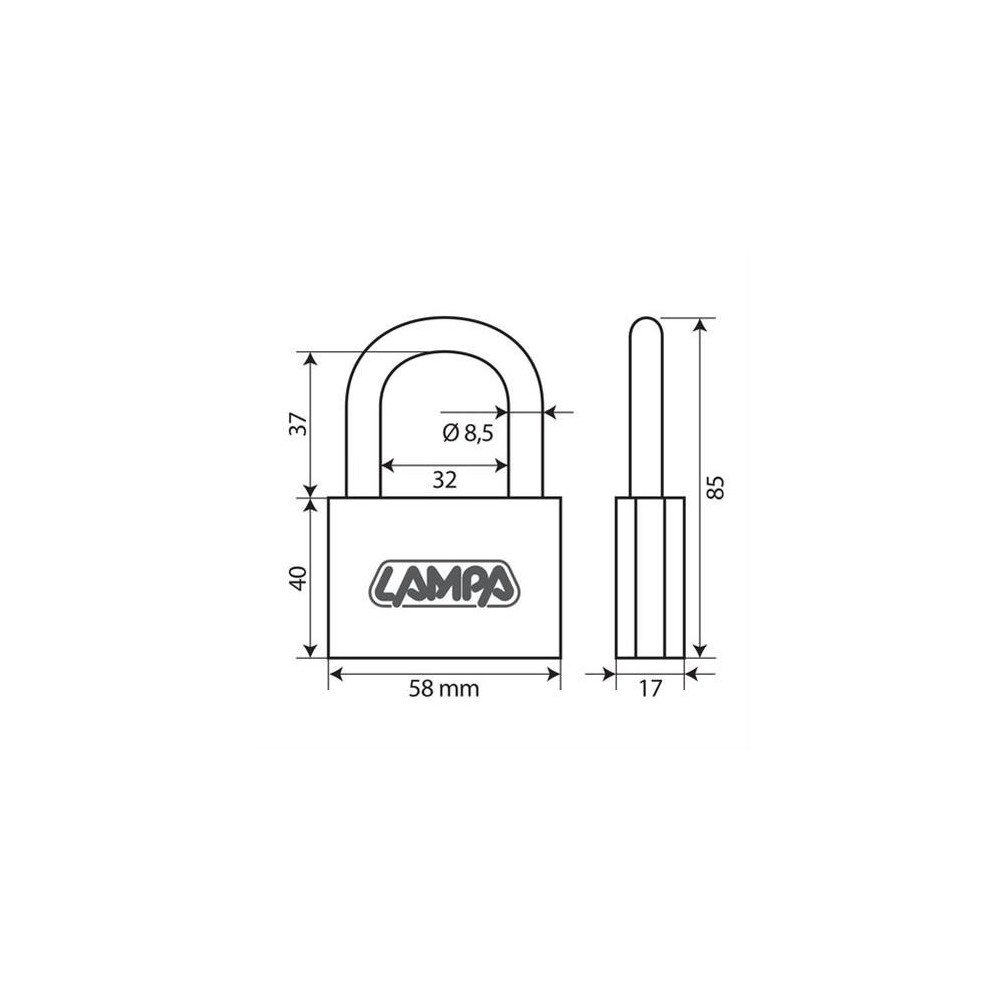Standard, lucchetto in ottone, 3 chiavi in dotazione. Per tutte le dimensioni vedi foto allegata.