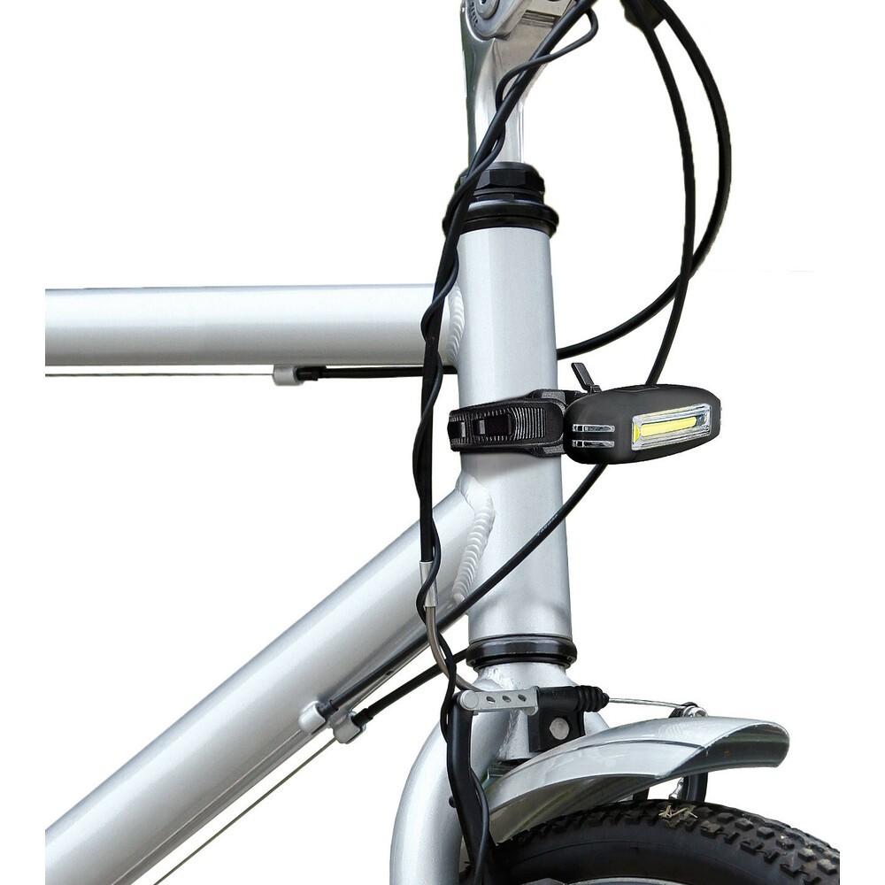 Led light, fanale anteriore a 3 funzioni. Luce fissa alta, fissa bassa, lampeggiante. Led Cob di ultima generazione. Altissima intensita'a' luminosa e basso consumo. Staffa di fissaggio al manubrio con sistema di innesto/disinnesto rapido. Funzione antifurto. Il fanale puo' essere rimosso per il parcheggio. Facile installazione (senza utensili). Universale per tutti i cicli. Ricaricabile anche con Power-Bank. Durata media della batteria in utilizzo continuo: 2 h (luce bassa). Tempo di carica: 2,5 h. Luminosita': 40lm