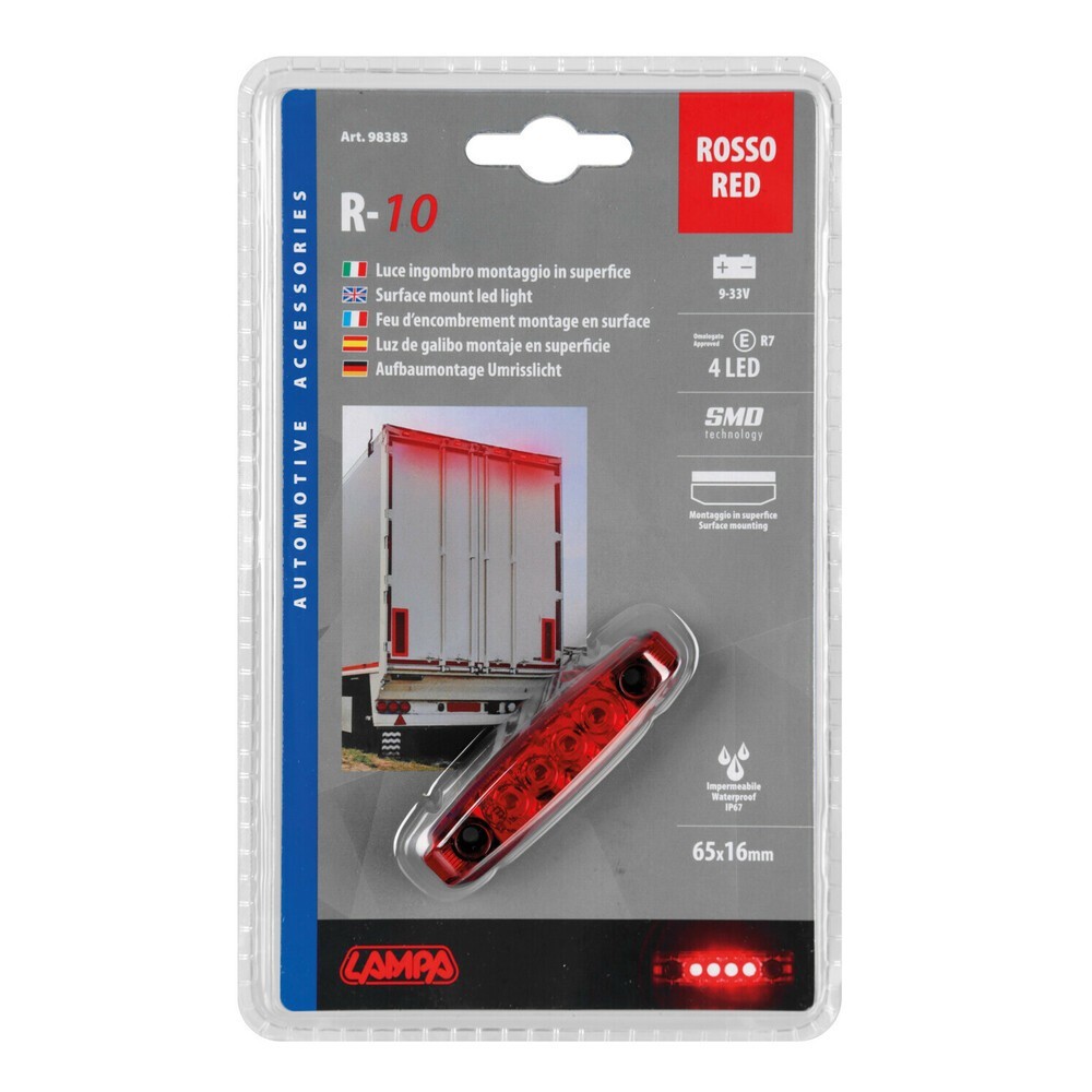 Luce a 4 led IP67 perimetrale ingombro camion 24V colore Rosso