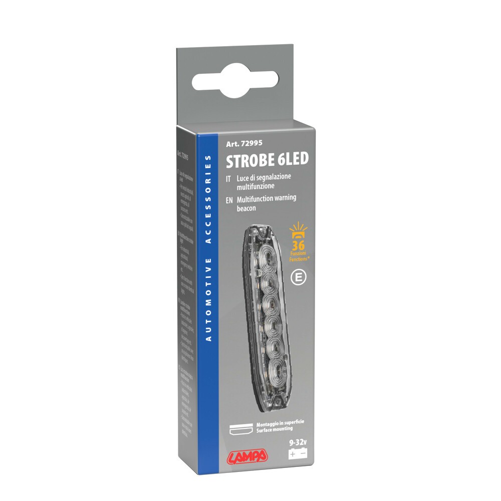 Luce strobo multifunzione a 6 Led, 12/24V. Per veicoli industriali, mezzi agricoli, di emergenza, di soccorso... Sincronizzabile con una o piu' luci dello stesso modello. Corpo in alluminio. Ultra sottile: 10 mm. Guarnizione e viti di fissaggio incluse. Impermeabile IP67.
