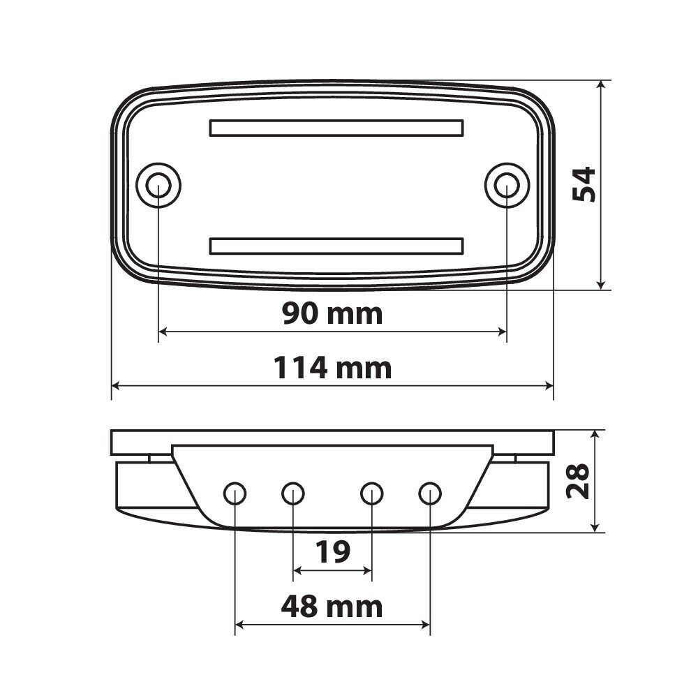 Luce ingombro 2 LED con catarifrangente e staffa 10/30V IP67 Arancio 114x54mm