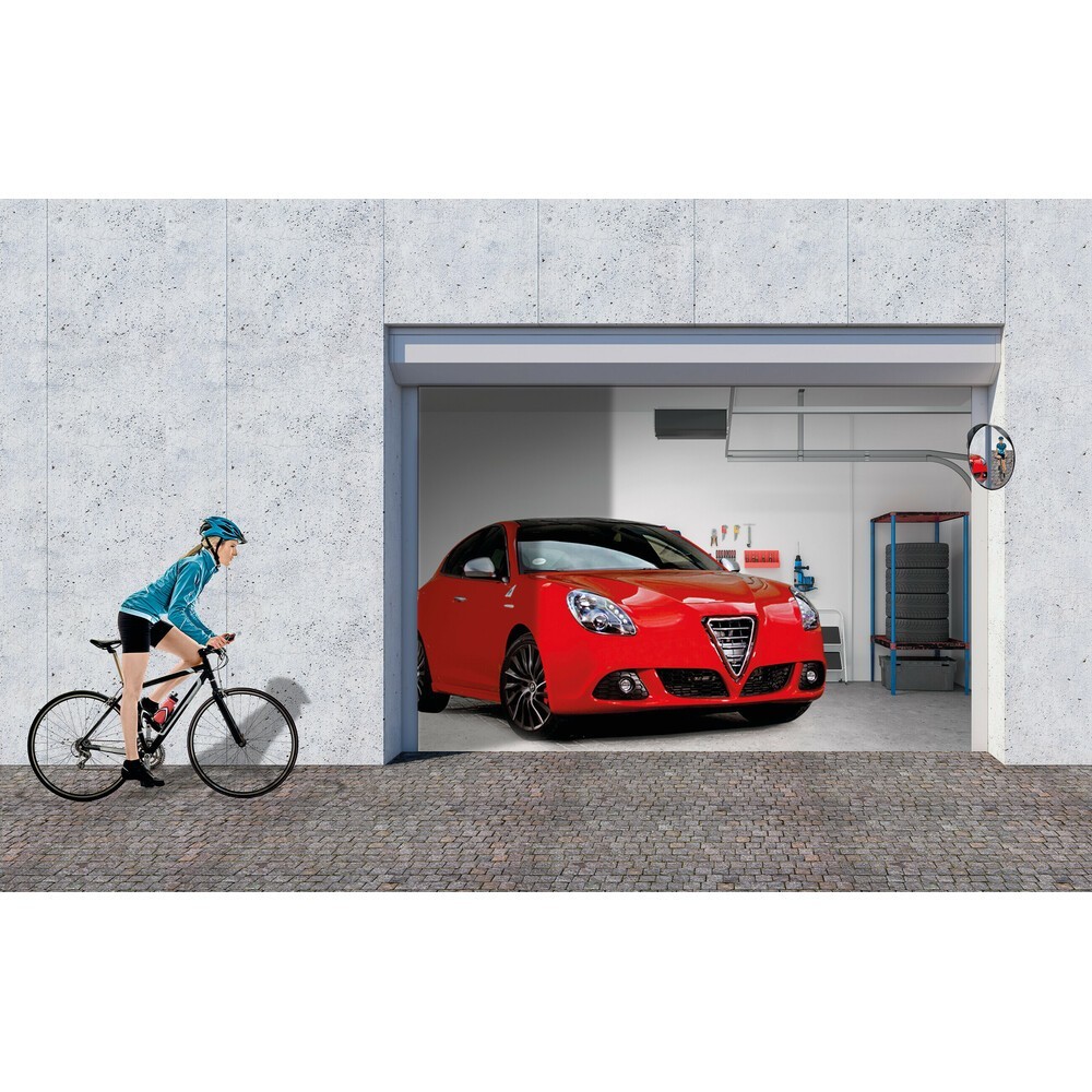 Specchio convesso multiuso con visuale 160°, ideale per manovre in garage, passi carraio, corridoi aziendali, aree di servizio. Elimina i punti morti, aiuta ad evitare collisioni. Ottimo come specchio di sicurezza all'interno dei negozi o supermercati come controllo antitaccheggio. Prodotto in resistente polipropilene, vetro infrangibile, adatto per uso interno o esterno e in tutte le condizioni climatiche e atmosferiche. Capacità riflettente a lunga distanza ed ampio raggio, fornito con staffe in metallo per montaggio a parete. Non omologato come segnaletica stradale. Lente in vetro. Distanza di visualizzazione: 8m