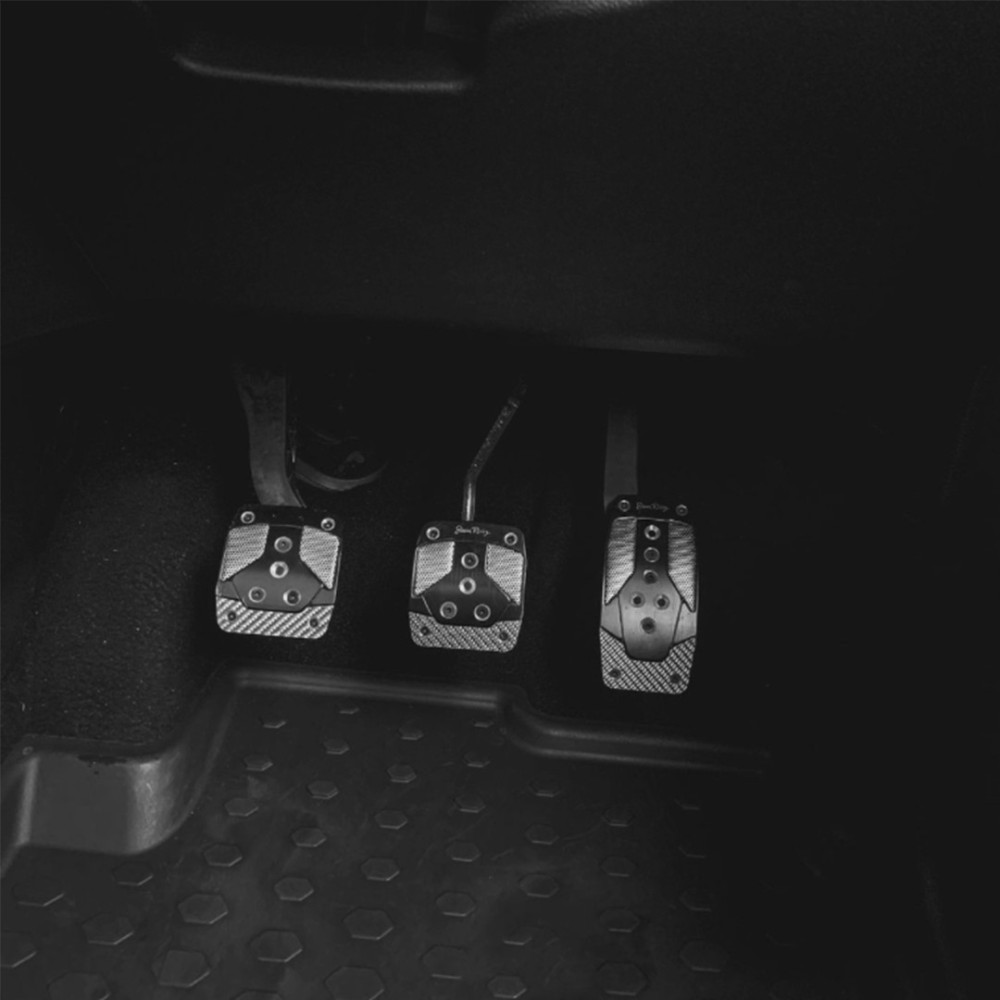 Kit 3 pedali auto Black Stripe in alluminio satinato con con inserti neri