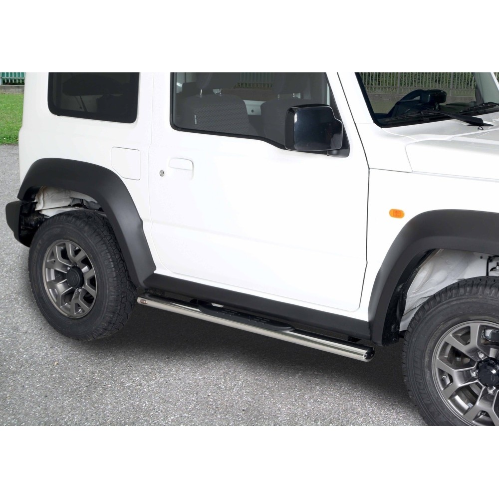 Compatibilita': Suzuki Jimny immatricolata dal 2018. Realizzate in acciaio inox e lucidate a specchio. Oltre a facilitare l'accesso all'abitacolo per la loro posizione e per gli inserti in gomma antiscivolo rendono il look della tua vettura unico e accattivante. Fornite di staffe specifiche e kit di montaggio