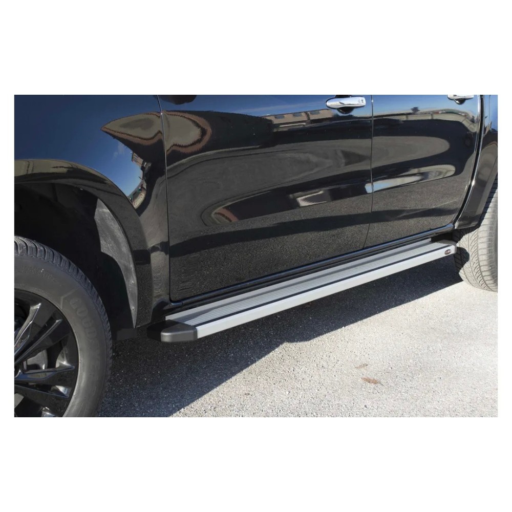 Compatibilita': Volkswagen Amarok immatricolata dal 2023. Coppia pedane laterali in alluminio. Versione: STD squadrate
