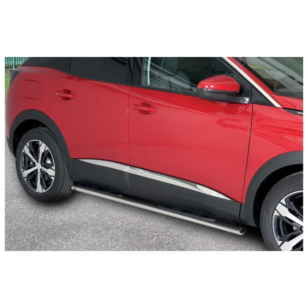 Compatibilita': Peugeot 3008 immatricolata dal 2016 al 2024. Realizzate in acciaio inox, sezione ovale, lucidate a specchio. Oltre a facilitare l'accesso all'abitacolo per la loro posizione e per gli inserti in gomma antiscivolo rendono il look della tua vettura unico e accattivante. Fornite di staffe specifiche e kit di montaggio. NOTE: disponibile anche nella versione Black Edition